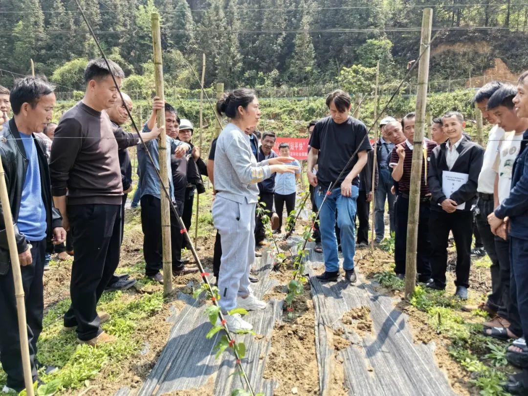 培训会结束后,农业专家组带领参会人员到陡寨村平下百香果种植基地开展室外实践教学,通过现场演示百香果种植规范化操作细节,实地指导群众百香果整地放苗、搭架定植等种植技术,让参训人员牢牢掌握百香果种植技术要领,同时对农户在百香果种植过程中存在的疑难问题进行一一解答。参训人员认真听、仔细看、详细问,现场氛围热烈浓厚。
