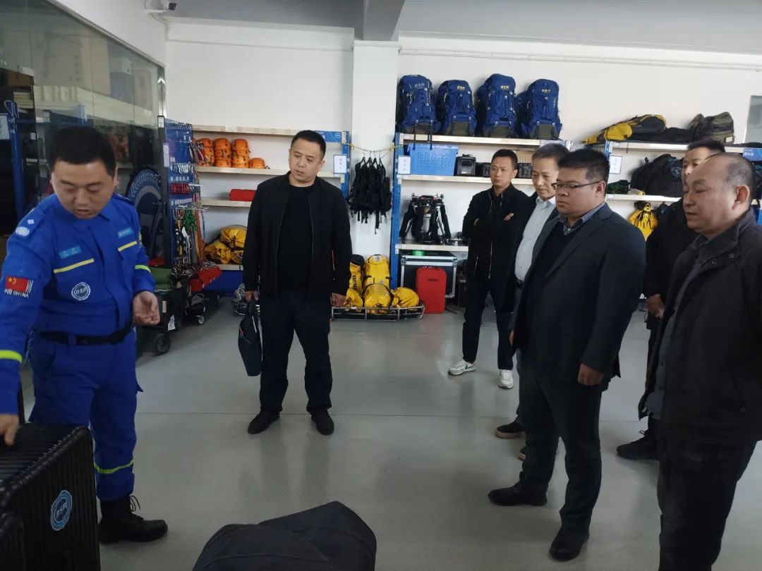 调研团一行参观协会副会长单位合肥市蓝天救援队装备库、了解党建情况及队伍的发展经历,并就救援队伍建设、人员管理、灾害处置等主题交流座谈。