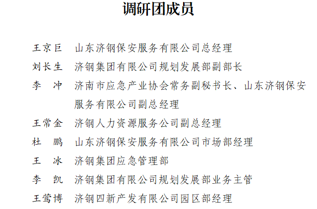 2024年3月21日至22日,济南市应急产业协会会长单位济钢集团有限公司应急产业调研团到我会调研交流。调研团由山东济钢保安服务有限公司总经理王京巨、济钢集团有限公司规划发展部副部长刘长生带队,一行8人。协会秘书长、四创电子股份有限公司首席营销总监李思明,副秘书长、清华大学合肥公共安全研究院产业合作中心办公室主任刘天霁,副会长单位合肥市蓝天救援队副队长方东,会员单位安徽中设明德会展有限公司营销部总经理高飞等分别陪同考察。副秘书长路伟全程陪同考察。
