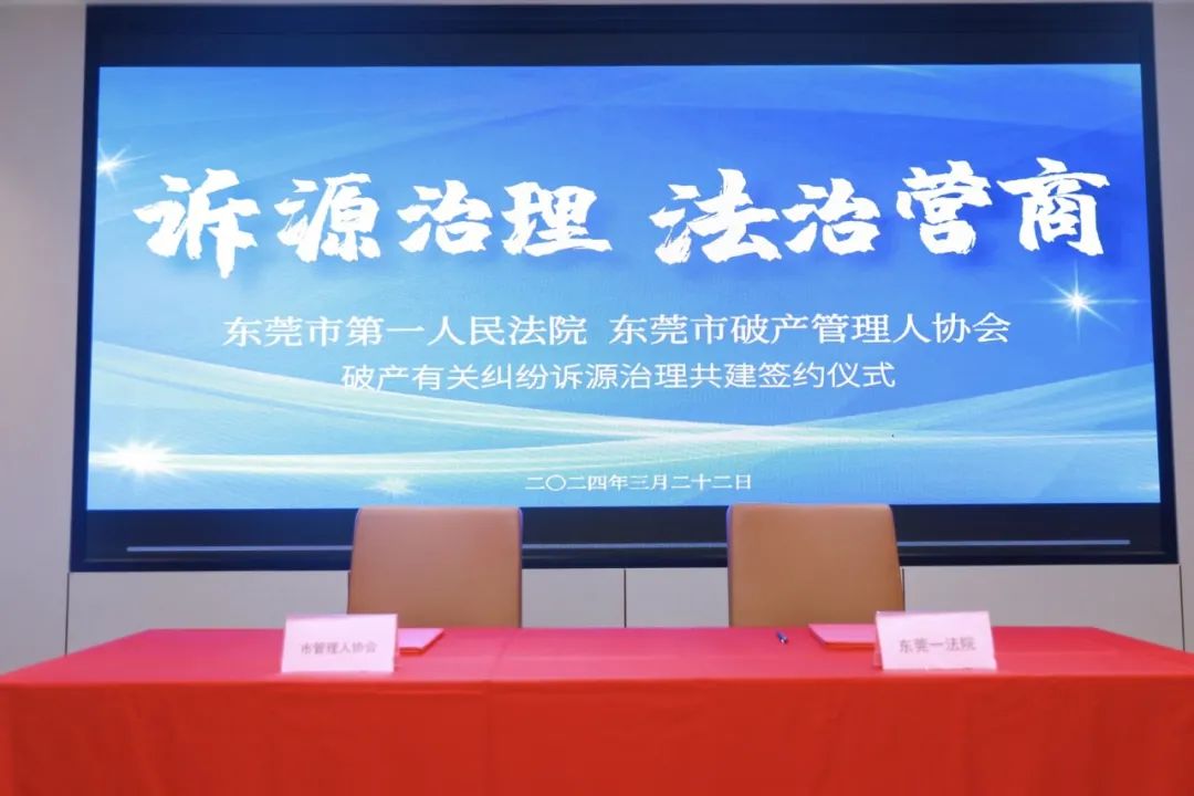 为贯彻落实习近平总书记关于把非诉讼纠纷解决机制挺在前面,从源头减少诉讼增量的指示精神,进一步强化诉源治理工作,结合东莞市破产审判工作实际,东莞市第一人民法院民事审判五庭与东莞市破产管理人协会经多次协商达成了《破产有关纠纷诉源治理共建协议》,并决定成立破产有关纠纷诉源治理工作室。