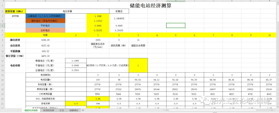 1、储能经济测算