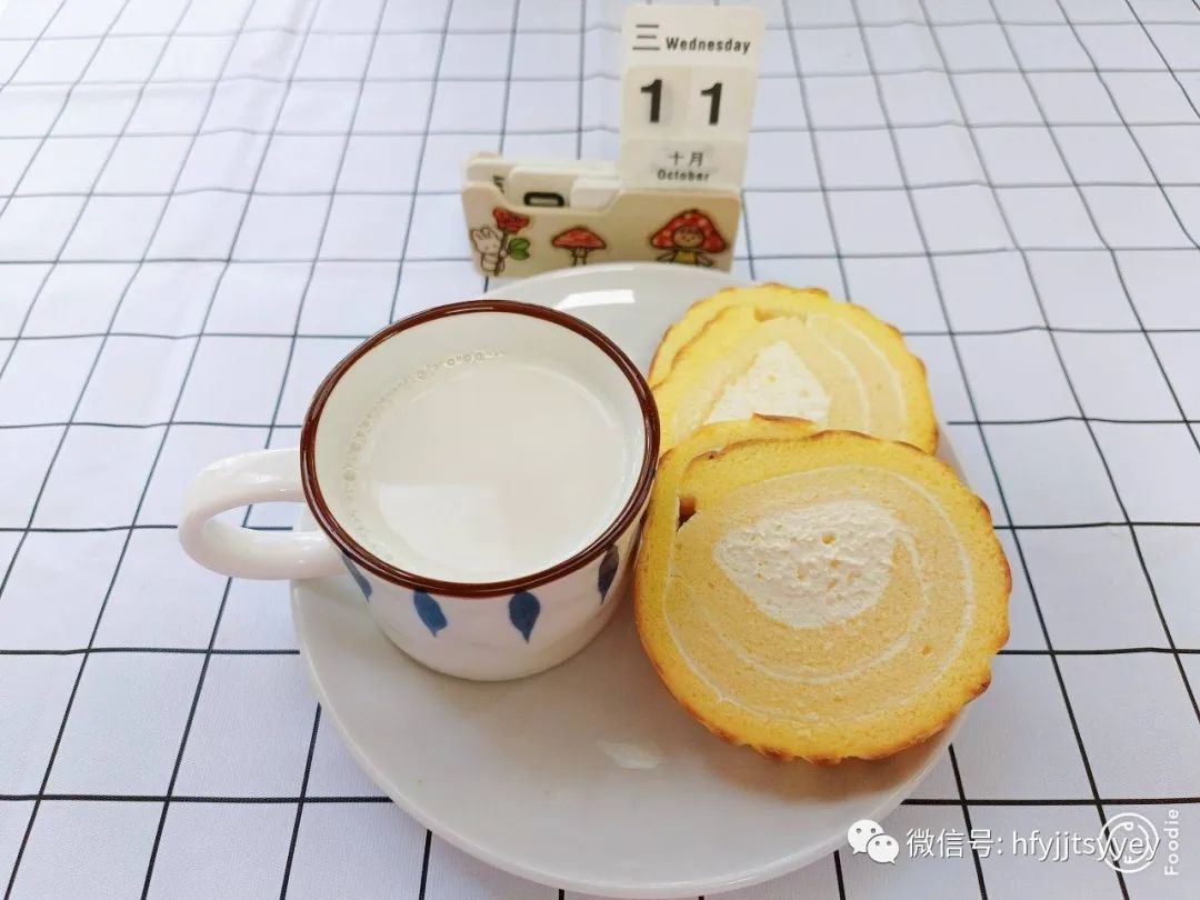早点:采蝶轩虎皮蛋糕卷 蒙牛纯牛奶