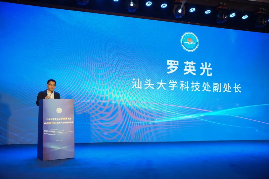 汕头大学科技处副处长罗英光在会上发言,他表示,汕头大学长期扎根汕头、服务汕头,一方面将与本地优势产业更加紧密结合,继续深化产学研合作,促进优势产业提质、升级,助力高端化、智能化、绿色化转型,推动价值链向科技、服务、品牌延伸,从而不断催生新质生产力。另一方面,学校将充分发挥省部级重点实验室等创新平台的优势,开展战略前沿技术、核心关键技术、颠覆性技术研究,为战略性新兴产业、未来产业的培育发展提供更多创新源泉。