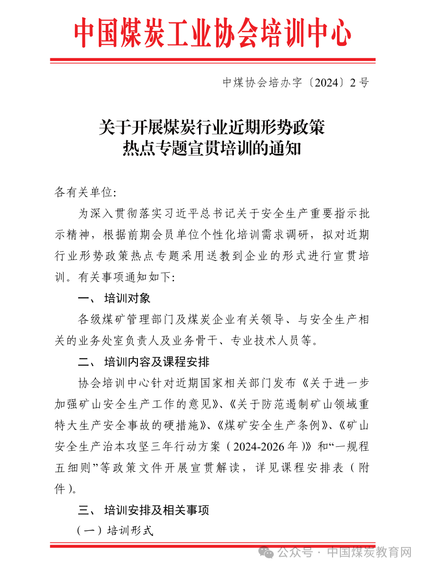 微信号:coaledu由中国煤炭工业协会组织、中国煤炭工业协会培训中心负责教学运行和管理的我国第一个面向全国煤炭企业,以服务行业为特色的现代远程教育培训网。建网十余载,拥有会员企业近百家,遍及全国,是煤炭行业覆盖面、受众面和培训面最广的教育培训网络体系。中国煤炭工业协会培训中心成为全国100家国家级专业技术人员继续教育基地之一,也是目前煤炭行业唯一的一家国家级专业技术人员继续教育基地。