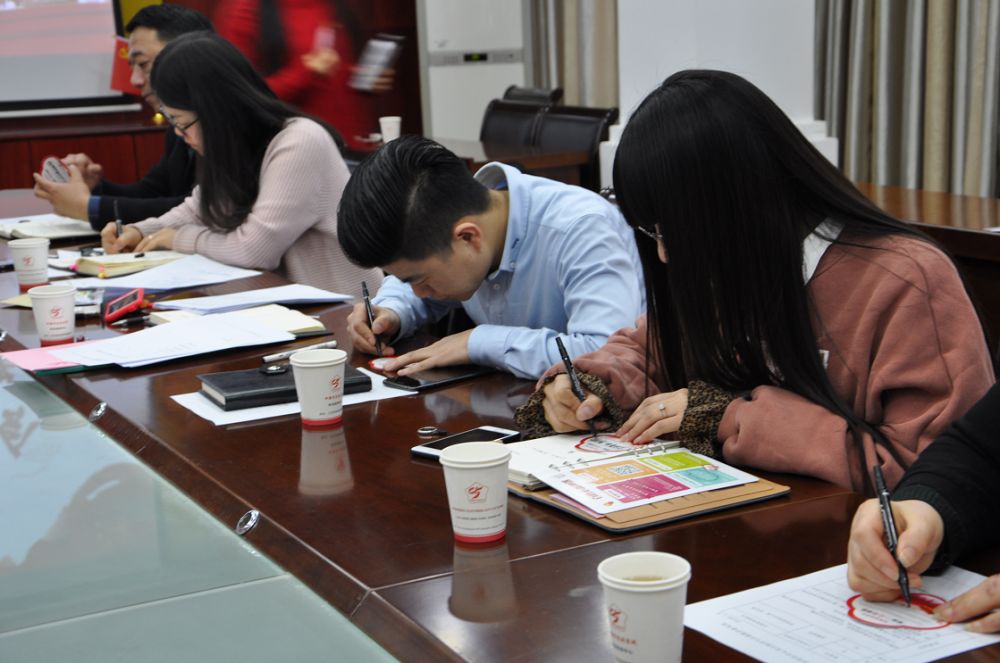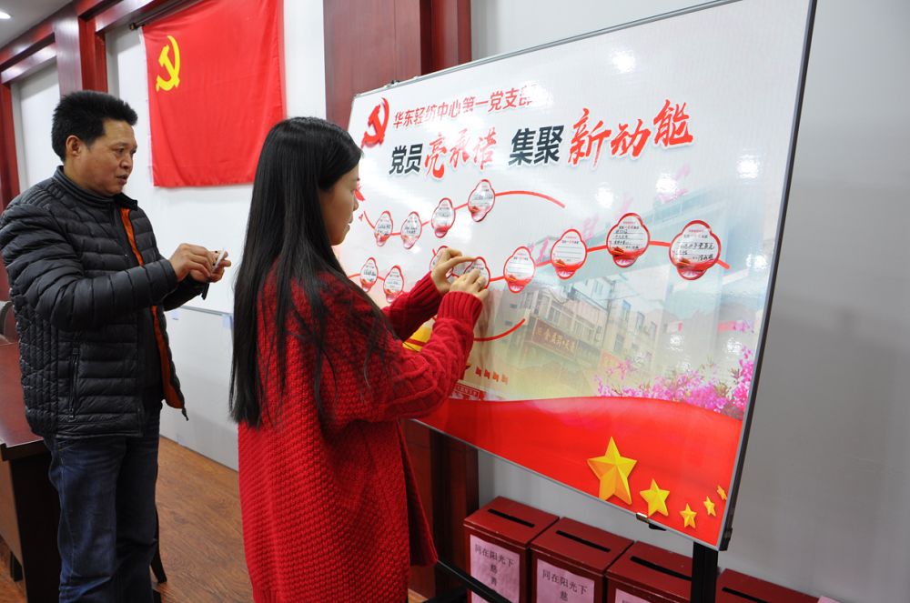 华东轻纺中心党支部组织党员书写对党的承诺。把