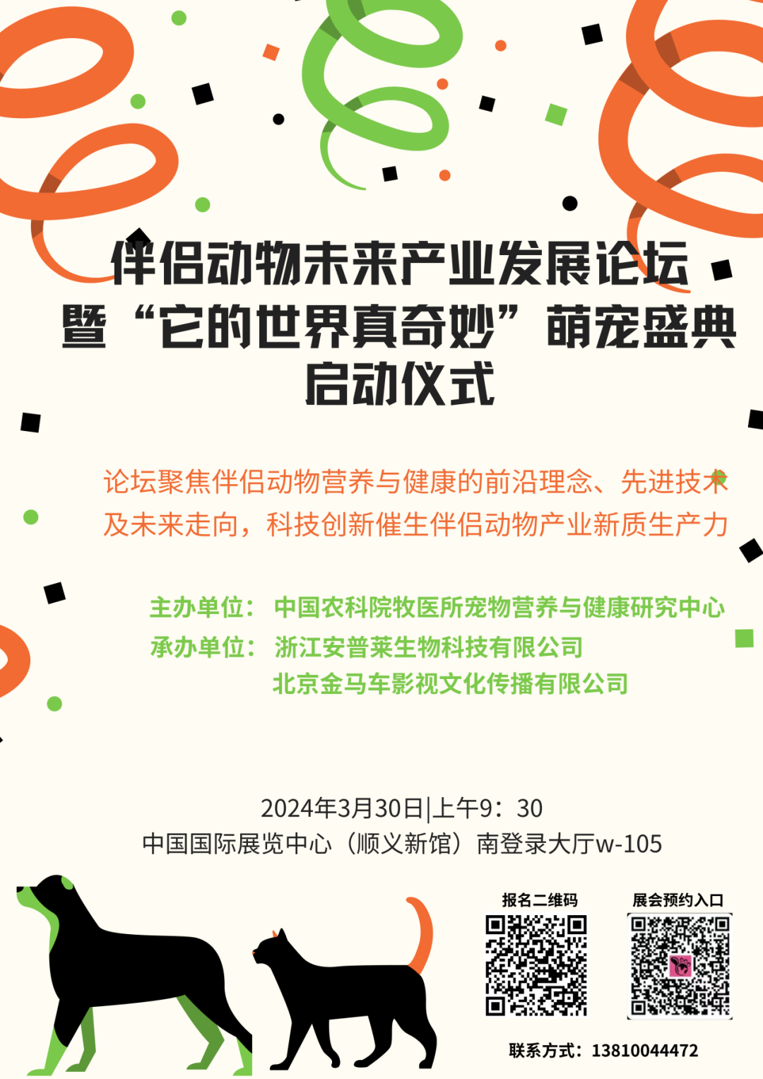 由中国农科院牧医所宠物营养与健康研究中心联合雄鹰京宠展共同主办的第一届“伴侣动物未来产业发展论坛”将于2024年3月30日在中国国际展览中心(顺义馆)举办。