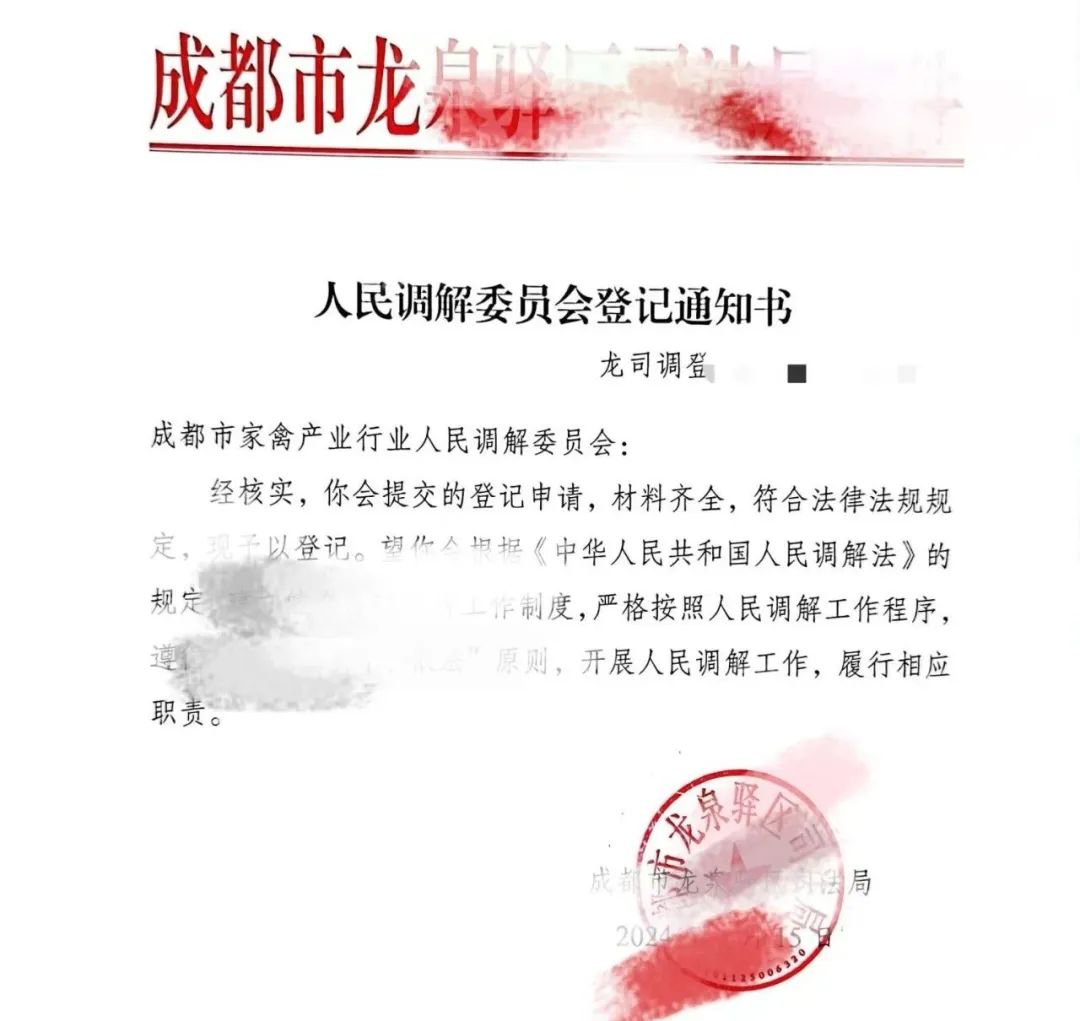 今年,为扎实推进民营经济领域纠纷多元化解机制建设,积极践行关于“把非诉讼纠纷解决机制挺在前面”的重要指示精神和党的二十大精神,充分发挥商会调解化解民营经济领域纠纷的资源优势,打造最优法治化营商环境,更好服务和保障家禽行业高质量发展的同时向更加专业化努力,在成都市司法局和龙泉驿区司法局、政法委的指导下,家禽产业行业人民调解委员会成功获批登记,标志着家禽产业司法营商环境建设工作成为中国式现代化万千气象农业篇章的标杆和旗帜,成为提升家禽产业全国影响力和美誉度的一张靓丽司法名片。