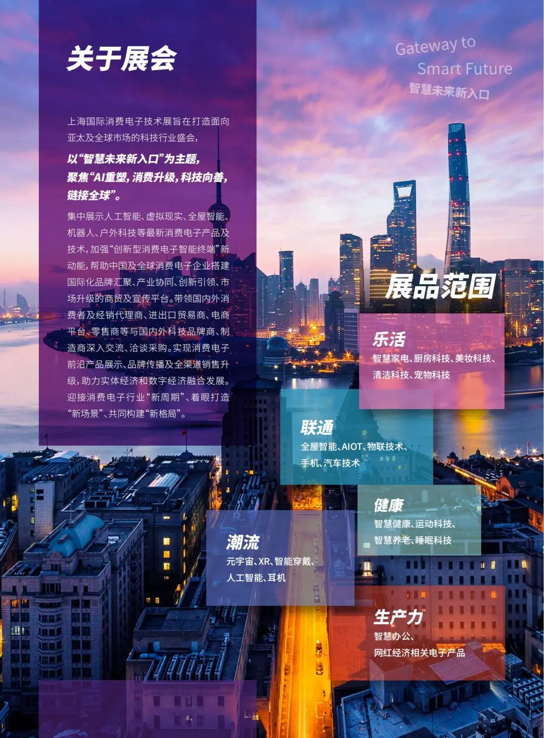 随后,TechG项目经理王寰女士向与会人员详细介绍了展会规划。2024上海国际消费电子技术展将于10月10-12日在上海新国际博览中心举办,计划展出面积达30,000平方米,将邀约超200家科技企业参展,30,000名专业观众到场采购并举办10余场同期会议活动。展会将以“智慧未来新入口”为主题,聚焦“AI重塑,消费升级,科技向善,链接全球”。围绕“乐活”,“健康”,“潮流”,“联通”,“生产力”5大方向,集中展示人工智能、虚拟现实、全屋智能、机器人、户外科技等最新消费电子产品,加强“创新型消费电子智能终端”新动能,帮助中国及全球消费电子企业搭建国际化品牌汇聚、产业协同、创新引领、市场升级的商贸及宣传平台,迎接消费电子行业“新周期”、打造“新场景”、共创“新格局”。