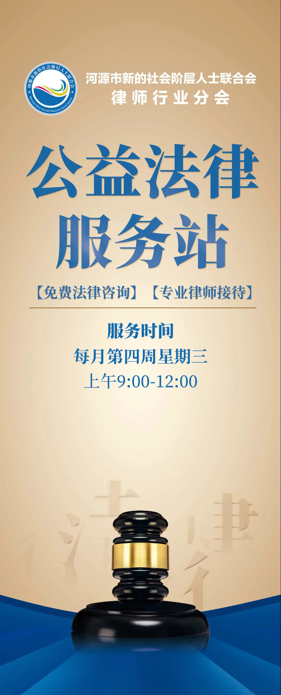 “公益法律服务站”是由河源市新的社会阶层人士联合会律师行业分会组织开办,在律师行业分会会址(广东言简律师事务所)开展的提供免费法律咨询服务的月度公益活动。通过为广大市民解答日常法律问题,普及和宣传法律知识,履行律师社会责任,不断提升群众法律意识,助力法治河源建设。