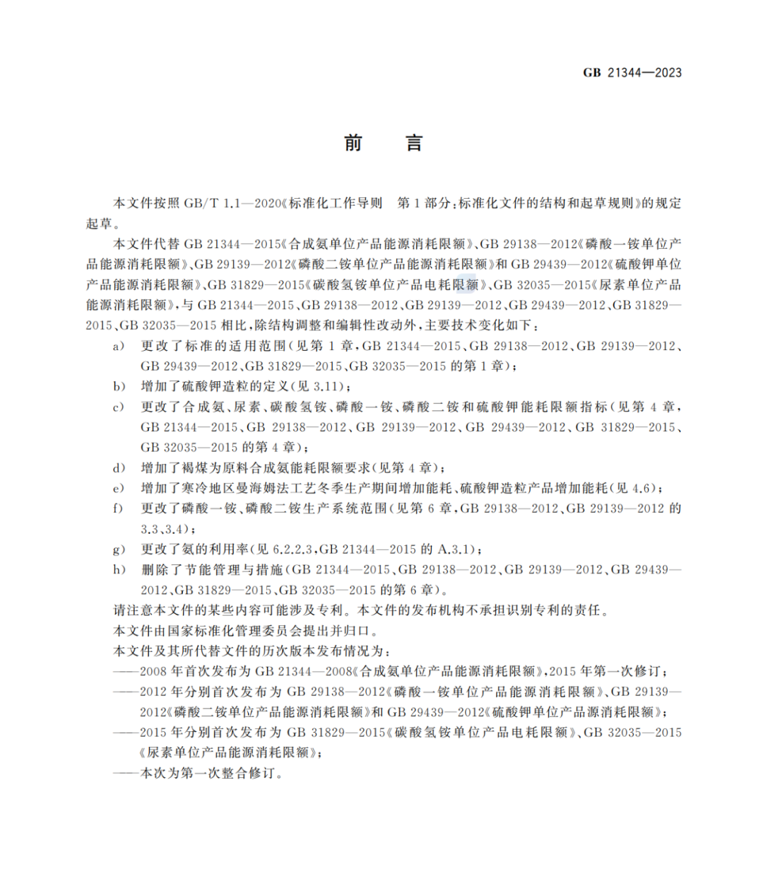 化肥行业单位产品能源消耗限额