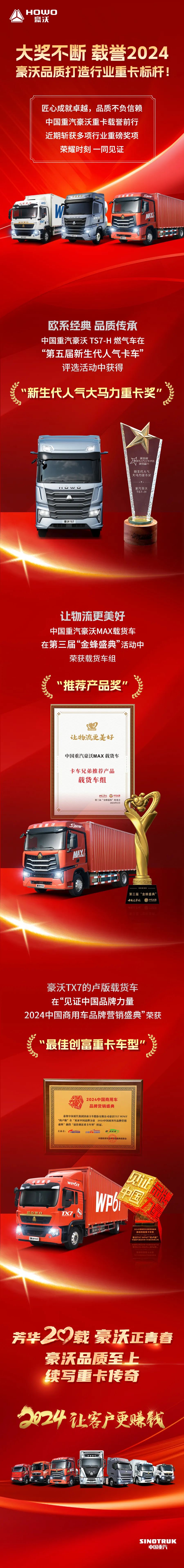 大奖不断 载誉2024丨豪沃品质打造行业重卡标杆!