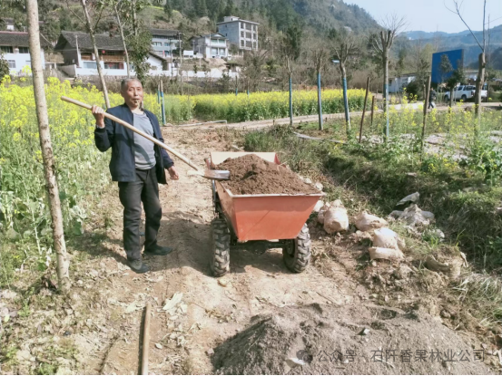 3月21日 项目部蒋权军在坪山指挥拉河沙用于苗木移植。