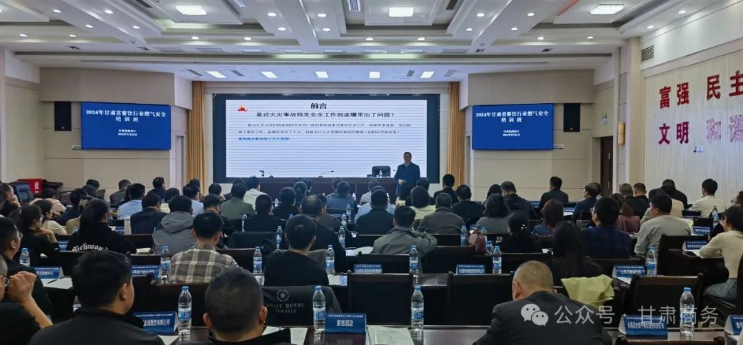 为深入贯彻习近平总书记对城镇燃气安全工作的重要指示批示精神,认真落实国家和省安委办工作要求,按照全省城镇燃气安全生产专项整治工作总体部署和年度培训计划安排。3月22日,省商务厅在兰州市举办了“2024年餐饮行业燃气安全培训班”,各市州商务局、兰州新区商文旅局分管领导,各县(区)商务部门负责人,各市州重点餐饮企业负责人共160余人参加了培训。