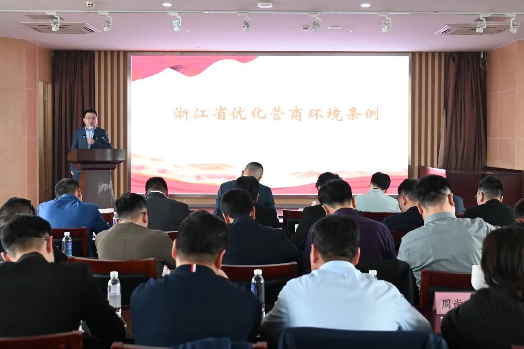 会议正式开始前,浙江开发律师事务所的合伙人律师宋军飞,以其深厚的专业背景和精准的法律洞察,为在场人员详细解读了《浙江省优化营商环境条例》。宋律师的讲解深入浅出,既带领大家学习了条例内容,又特别强调了营商环境在推动经济发展中的核心作用。他指出,条例的颁布实施是浙江省进一步优化营商环境、激发市场活力、促进企业健康发展的重要举措。