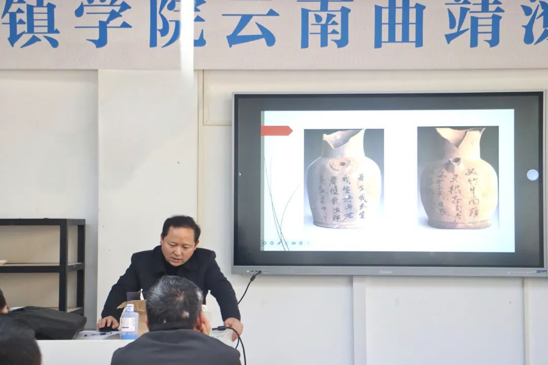 本次人才培养项目旨在精准培育千名陶瓷产业梯次人才队伍,构建产学研深度融合的创新平台,以推动陶瓷产业的革新发展,助力景德镇学院将陶瓷这张璀璨名片推向更广阔的舞台,并携手助力曲靖市推动潦浒陶瓷产业转型升级。汪开潮以严谨的态度和扎实的学识,从陶瓷书法的概念入手,全面而深入地剖析了陶瓷书法的内涵与外延,学员们深受启发。