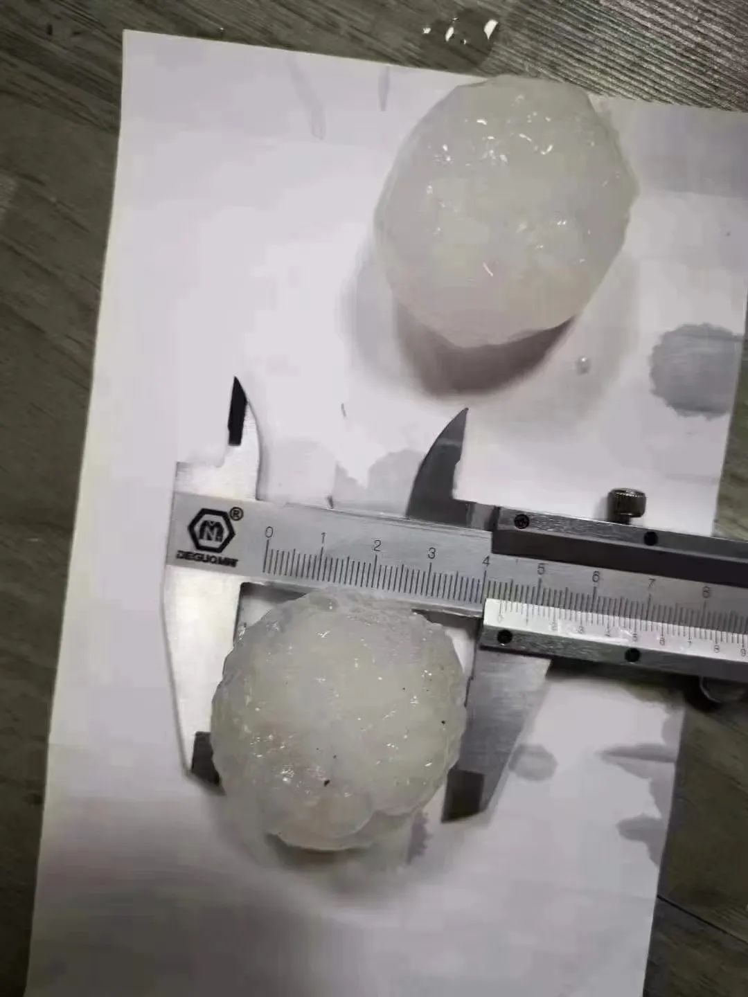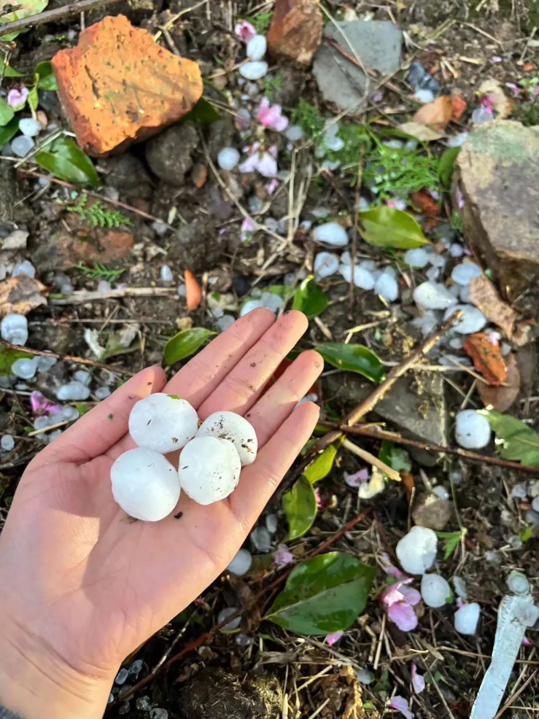 不少网友晒出鸽子蛋大小的冰雹,