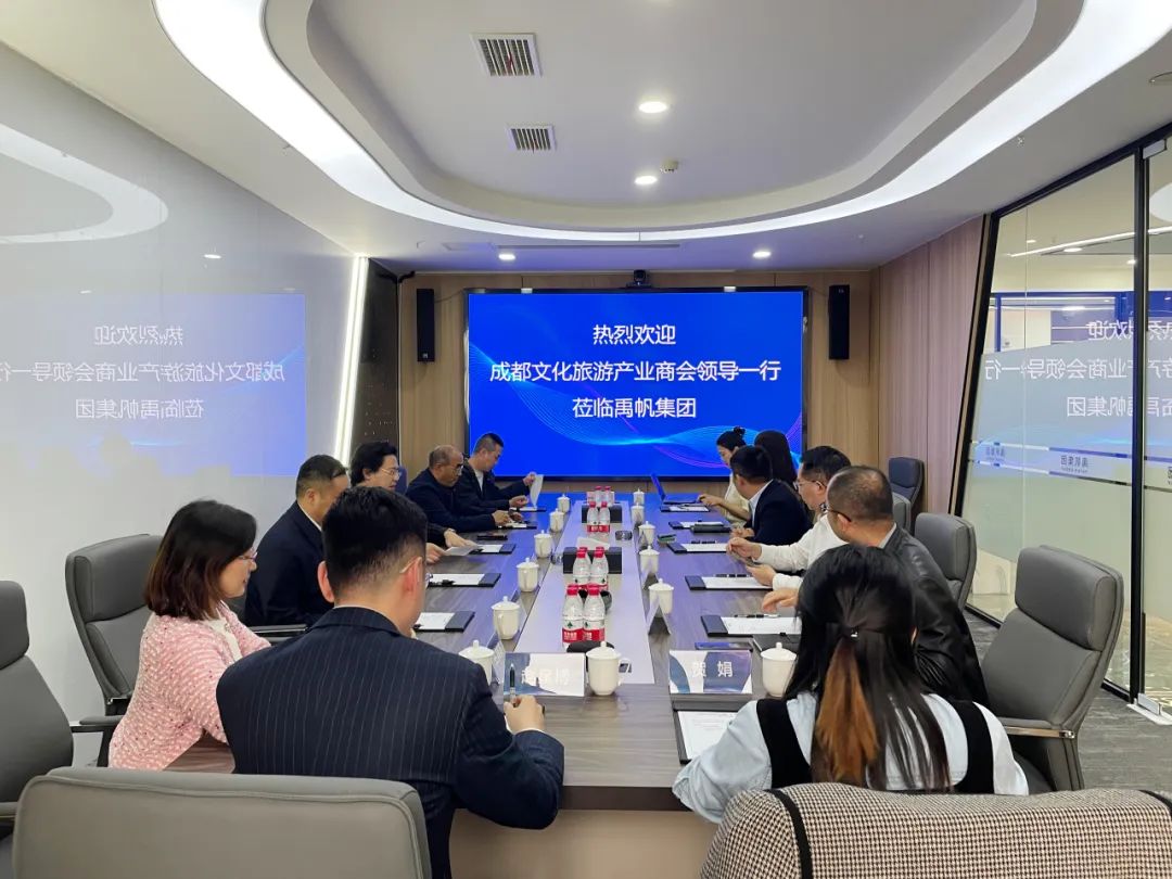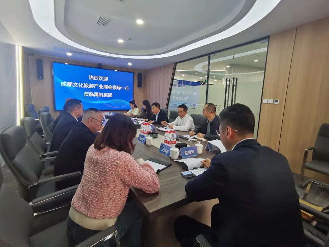 2024年3月26日下午,成都文化旅游产业商会会长王开昕,党委书记、秘书长肖满生,成都文化旅游产业商会副会长、乡村振兴研究院执行院长周游,副会长、乡村振兴研究院副院长谢绍宁,副会长、乡村振兴研究院副院长钟南虎,副会长王芸、肖代彬一行8人赴拟任副会长企业成都禹帆集团旗下成都华禹智行文化发展有限公司考察交流。