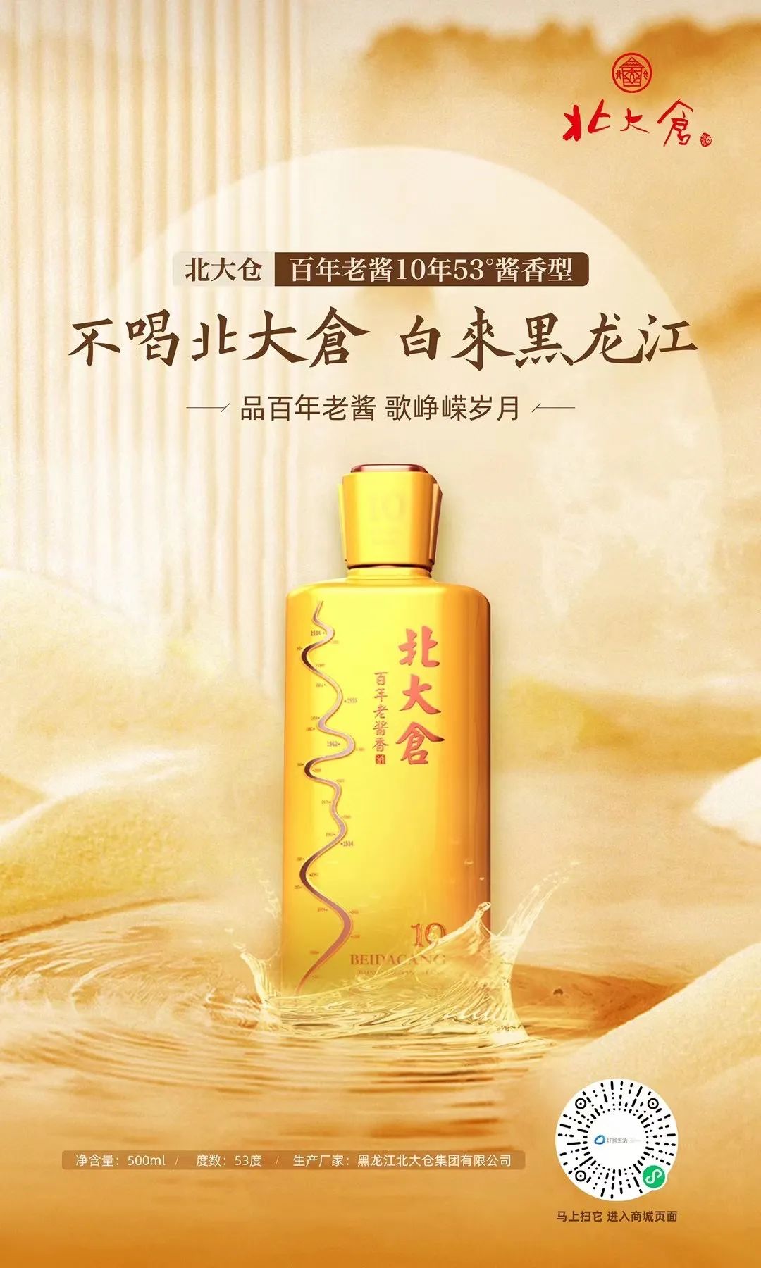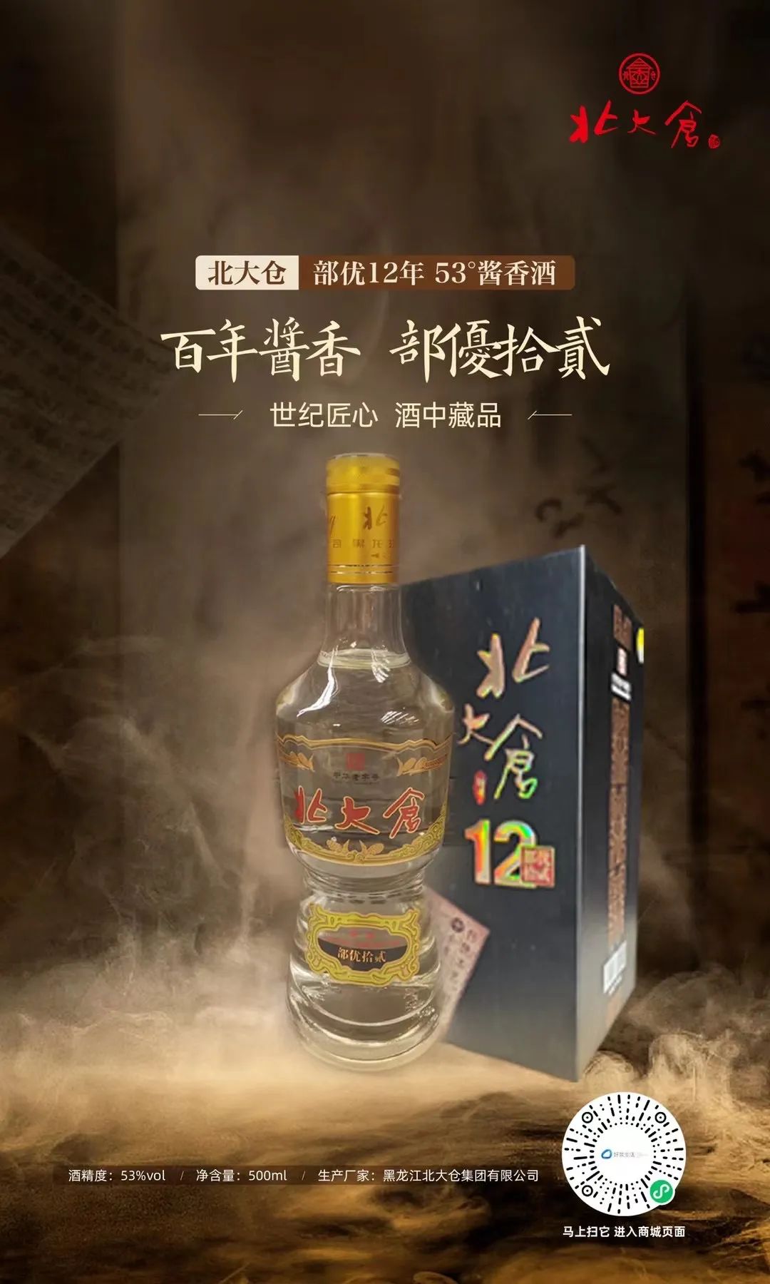 据了解,黑龙江北大仓集团有限公司总部坐落在黑龙江省齐齐哈尔市龙沙区海山胡同10号,厂区(包括生产基地)总面积12万平方米,现有员工1000余名。北大仓酒的源头,是1914年(民国3年)9月马子良创设于齐齐哈尔海山胡同的聚源永烧锅。一百多年来,北大仓始终秉持“诚信、务实、高效、创新”的企业精神,坚守传统酿酒技艺,积极开拓市场,研发新产品,构建起以酱香型白酒为主体,浓香型白酒为辅的高中低度、高中低档、大中小包装的不同层次的系列化产品体系。目前北大仓集团已发展成为集白酒生产、冰雪装备、国际物流、优质农业、房地产等多行业为一体的综合性企业集团,被评定为农业产业化国家重点龙头企业、中华老字号、全国文明单位、中国爱心企业、齐齐哈尔市财政支柱企业。“北大仓酒传统酿造技艺”是东北黑土地上的具有一百多年历史的传统白酒酿造技艺,具有独特的工艺特点和深厚的地域文化内涵,被认定为 “黑龙江省非物质文化遗产”。北大仓非物质文化遗产代表性传承人已经传至第六代,酿酒大工匠谱系已经传至第七代。北大仓集团被命名为“全国爱心企业”、“黑龙江省和谐企业”、“黑龙江省光彩企业”。