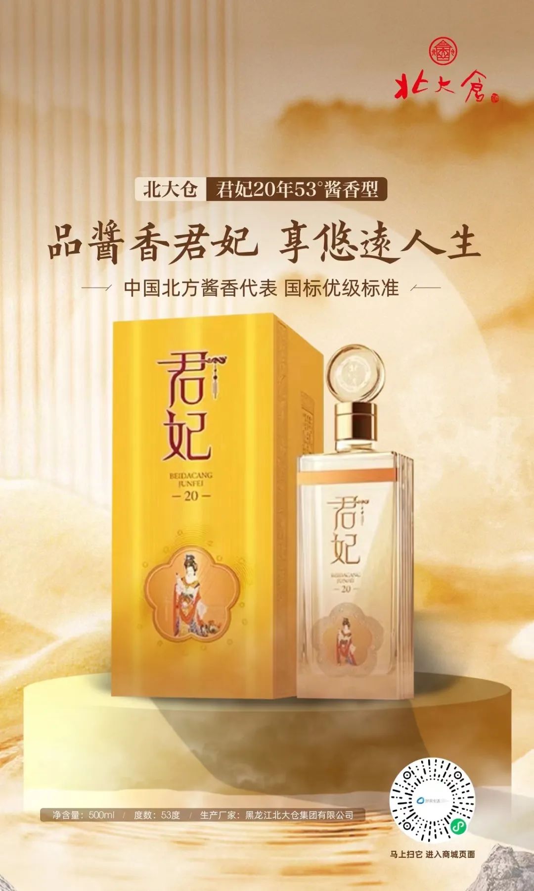 目前,廊坊市场主要销售君妃20年酱香型、百年老酱10年酱香型、部优12年酱香型高中低三款北大仓酒。会员购买享受会员优惠价格,同时可以给商会和小组创收。