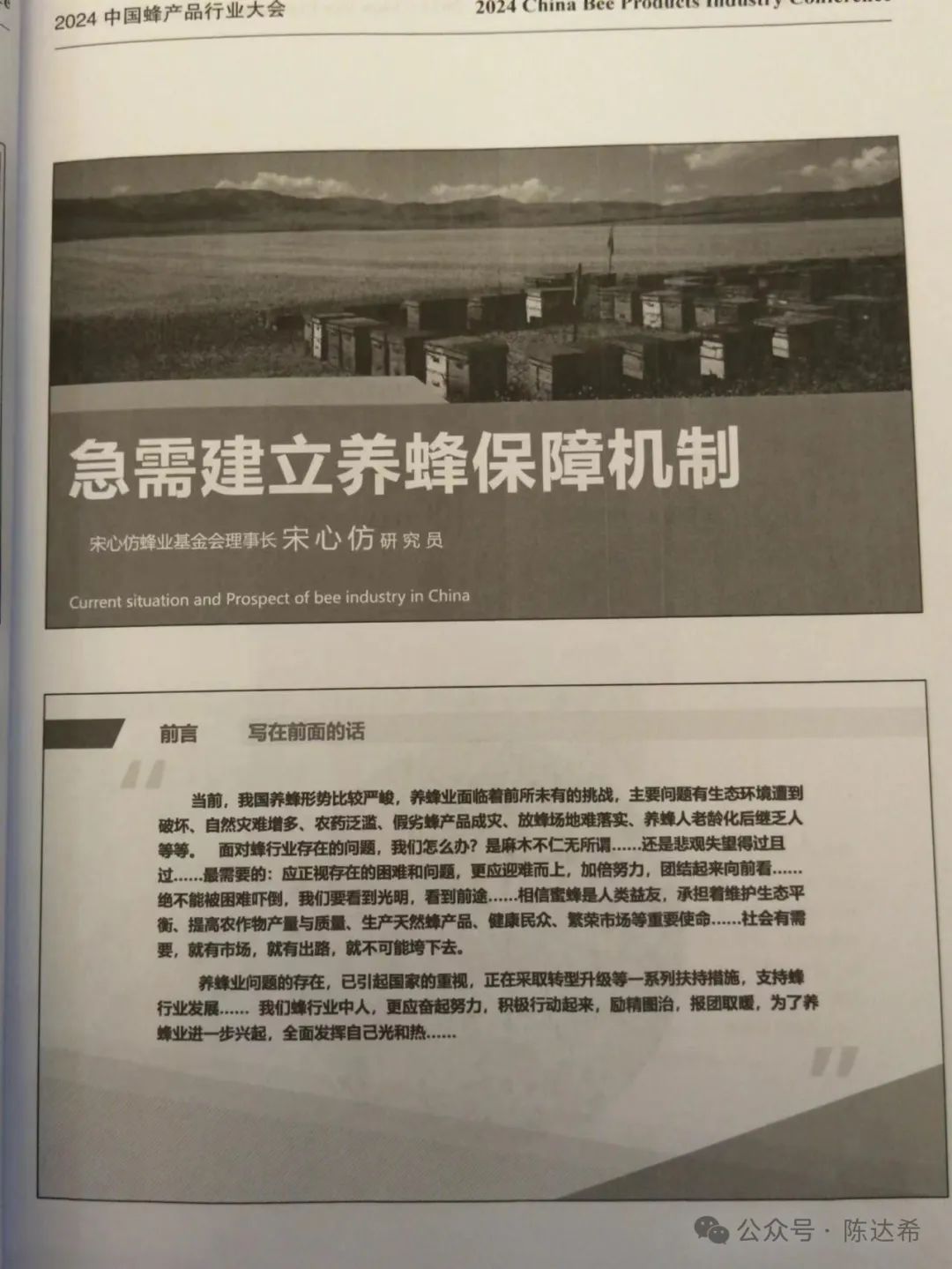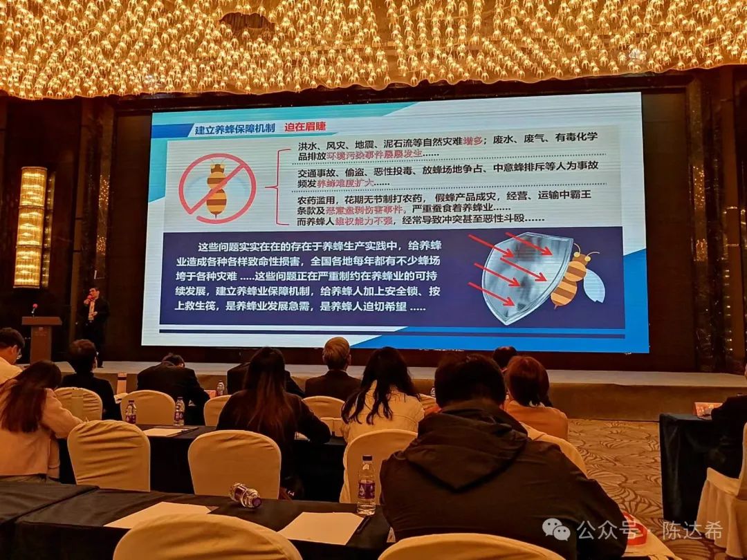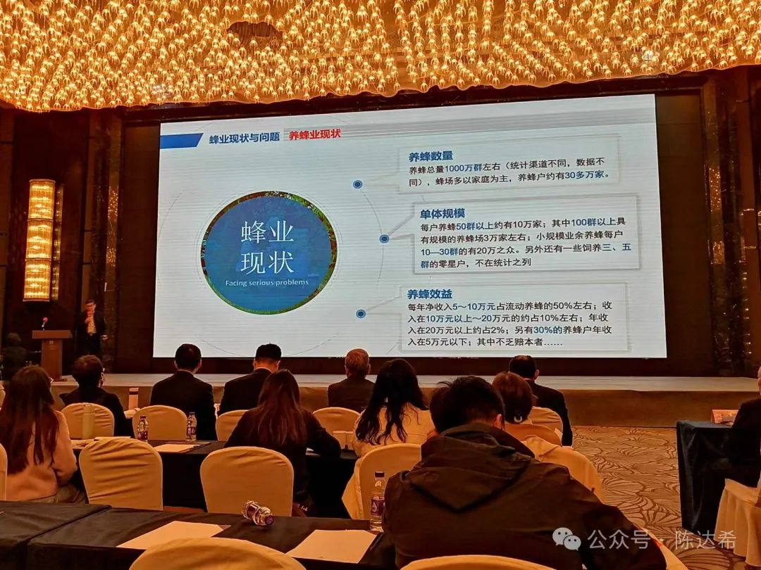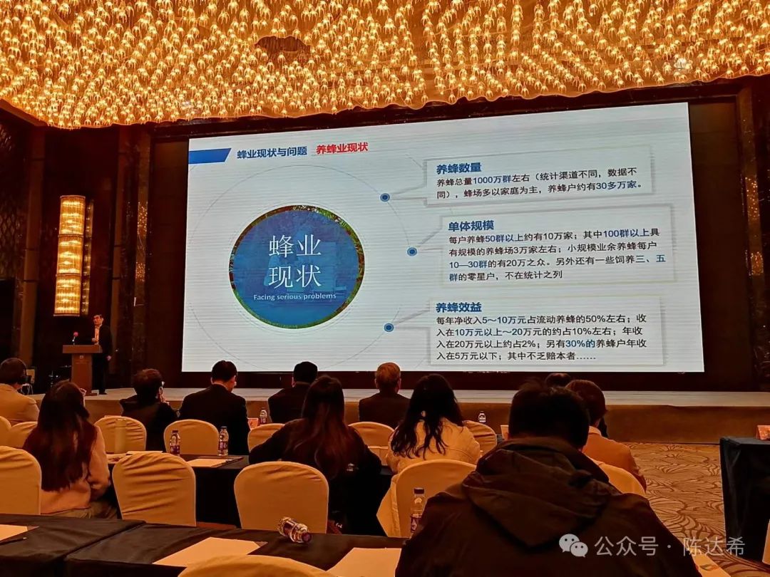 2024年3月25-27日,中国蜂产品行业大会在南京富力万达嘉华酒店胜利召开。共有180多名中外蜂业代表参会。会议的主题是:“面向未来 守正创新”。宋心仿蜂业发展基金会作为协办单位参与组织了今年的中国蜂行业大会。3月26日上午,宋心仿蜂业发展基金会理事长、中国养蜂学会副理事长、中国蜂产品协会副会长、宋心仿研究员,作了“养蜂保障机制与蜂业发展”的精彩演讲。【蜜蜂大讲堂】又一次走进了中国蜂行业大会。宋心仿理事长的演讲受到了与会人员的热烈欢迎和强烈反响。现将宋心仿理事长演讲的现场照片和资料汇集如下 ,供大家分享!
