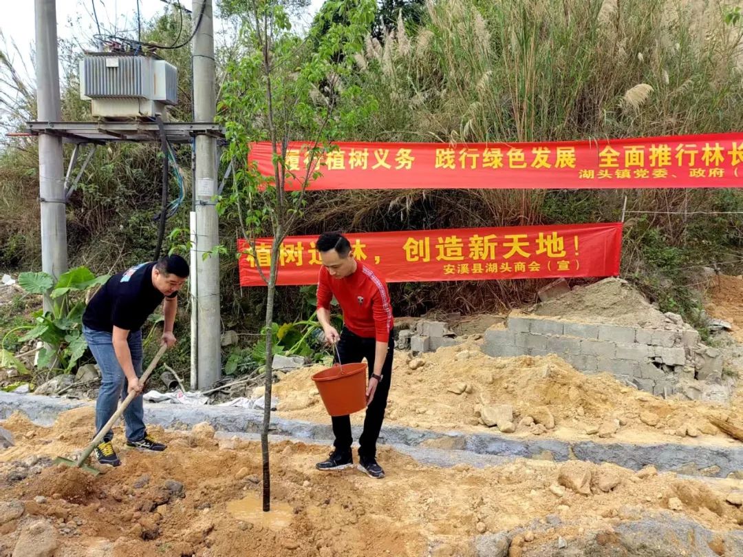 植此青绿,不负好春风。植树造林、绿化家园是一项功在当代、利在千秋的事情。此次植树活动,增强了广大会员的生态保护意识,展现了凝心聚力、团结协助的湖商精神。并将以引领文明新风、服务社会发展为己任,为切实践行“绿水青山就是金山银山”的绿色发展理念担起责任,助力大美湖头生态建设。