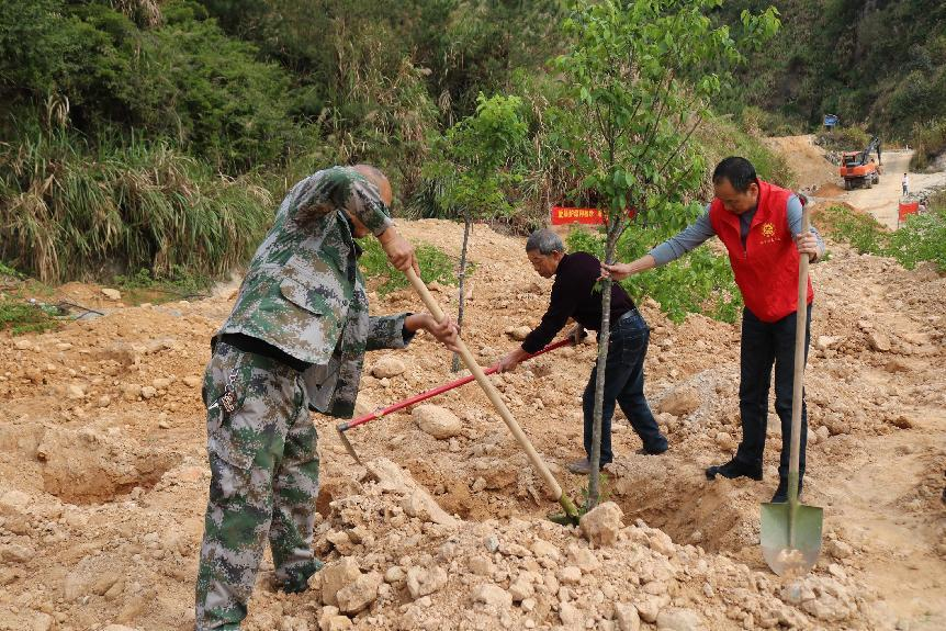 碧空如洗,春意盎然,植树现场,大家分工协作,扶正树苗、挥锹培土、提桶浇水……经过一番辛勤劳动之后,300多株福建山樱花、山杜英和三角梅等树苗全部“安家落户”,原本的空地上,植下了一片片的新绿,一棵棵树苗错落有致,在明媚的春光中展现出蓬勃生机,形成一道美丽的风景线。
