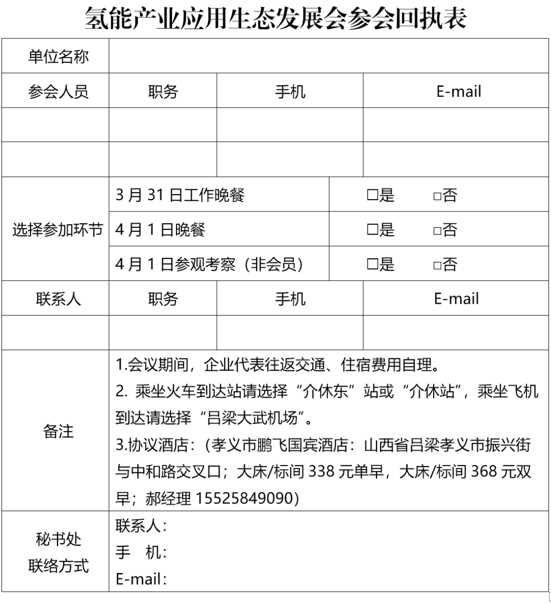 承办单位:山西鹏飞集团有限公司、全联新能源商会氢能专业委员会(筹)