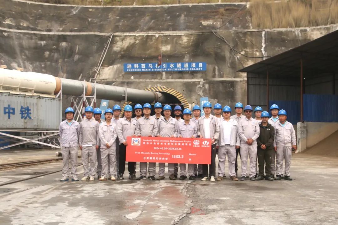 3月26日,从喜马拉雅山南麓再次传来捷报,由中铁二局与中海外联合承建的尼泊尔逊科西马林引水隧道项目TBM隧道单月进尺突破1503.3米,刷新了该项目团队2023年创下的单月最高进尺1224.13米的世界纪录,同月该项目还创造了6米级同类型双护盾TBM项目日进尺72.68米的世界纪录。