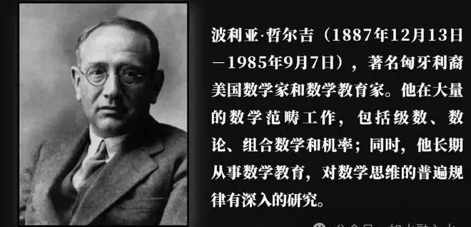 特别让人感动是波利亚,他说:“匈牙利一直很穷,从未达到富裕的程度,而数学是最便宜的科学,不需要昂贵的设备,使得匈牙利的智力较集中地投入到了数学领域里”。波利亚本人虽然最初并不想学数学,但在他掌握了7门语言,学习文学和哲学后,才发现自己的真正兴趣在数学。他在数学教育方面的贡献突出,爱因斯坦的大儿子就是他的学生。当然他最著名的著作《怎样解题》,是真正的畅销书。他总结出解题四大步骤:弄清问题——拟定计划——实现计划——回顾,既是解题的步骤,也是做事的步骤。