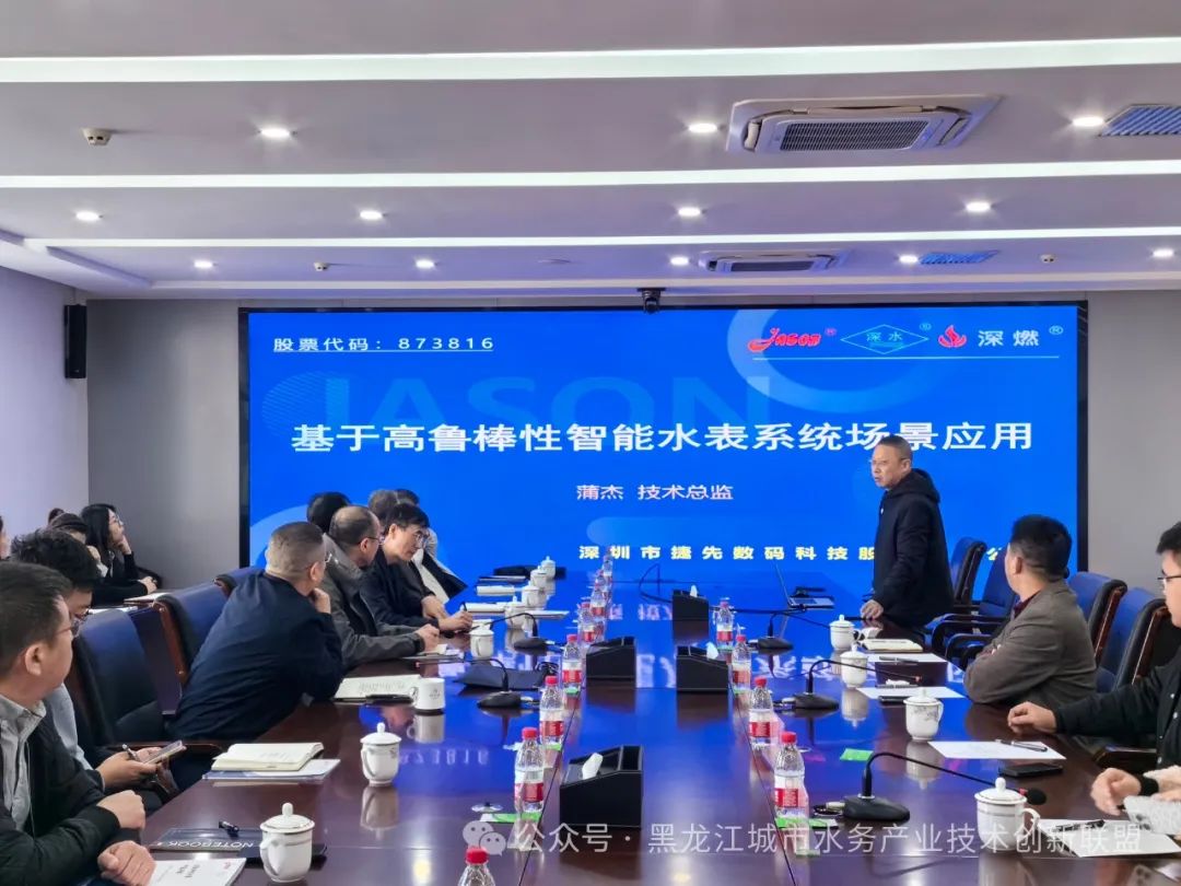 3月27日上午,黑龙江城市水务产业技术创新联盟秘书长、产业园(联盟)管理办公室主任郑海军主持召开黑龙江城市水务产业技术创新联盟与深圳捷先数码科技公司交流会,哈尔滨水务发展建设集团市政建设有限公司,产业技术服务事业部(产业技术发展研究院),道里、道外、南岗、香坊、平房供水分公司,实业集团盛龙水表公司,深圳捷先数码科技公司以及产业园(联盟)管理办公室相关人员参加会议。