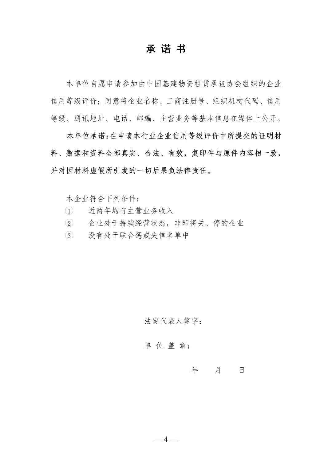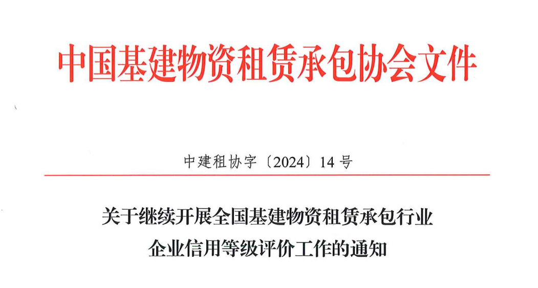 为贯彻落实中共中央办公厅、国务院办公厅印发的《关于推进社会信用体系建设高质量发展促进形成新发展格局的意见》相关要求,促进企业提高信用管理水平,提高企业品牌竞争力,进一步规范市场秩序,营造公平竞争、诚信经营的市场环境,推动行业高质量发展。中国基建物资租赁承包协会将继续做好2024年全国基建物资租赁承包行业企业信用等级评价工作。