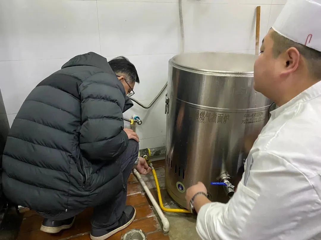 本次重点检查了厨房的燃气安全防护措施、燃气操作规程、压面机等机械设备管理规程,检查小组对升级更换部分软管;完善机械设备操作规范与管理;加强一线员工对燃气、机械操作安全培训;梳理相关应急演练等方面提出改进意见。
