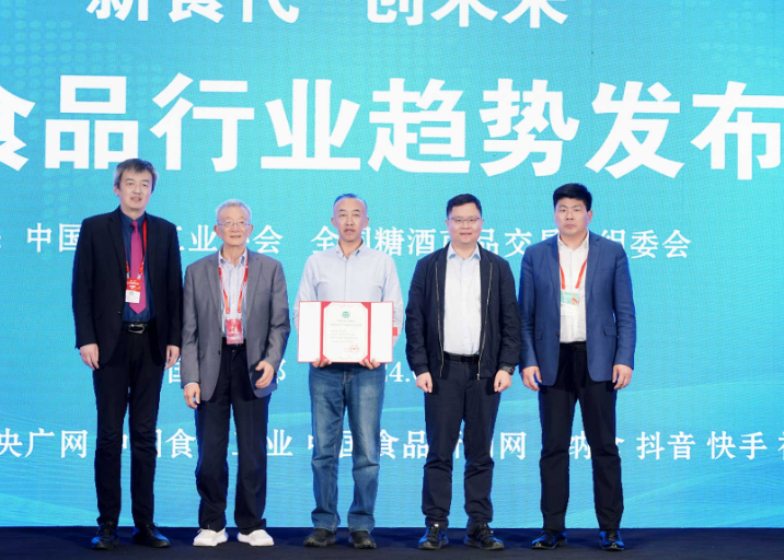 在新产品发布环节,中国食品工业协会经销商工作委员会副会长、纳食科技董事长李研发布了创新产品名单,旺旺、娃哈哈、鲁花、白象、伊利、双汇、六个核桃、海天,太太乐、益海嘉里、五粮液、温氏食品、君乐宝、今麦郎、圣农、五得利、双塔、泸州老窖、徐福记、统一,获得“匠心品牌”称号,马大姐、大窑、加多宝,好想你、元气森林、卫龙、千禾、魔水师、北纬47、洽洽、三只松鼠、瑞幸、双莲、雪都冰泉、好利来、十月稻田、名仁、杨掌柜、疯狂老虎、宏宝莱,获得“创新品牌”称号。