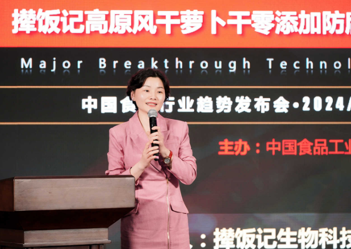 在新技术发布环节,中科院西北生态环境资源研究院冰冻圈实验室主任王飞腾解读了低氘水行业技术发展及趋势。撵饭记生物科技(云南)有限公司副总裁陈芬公布了高原风干萝卜干零添加杀菌保脆的研究成果。