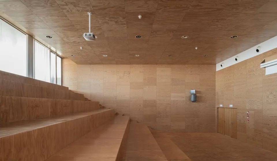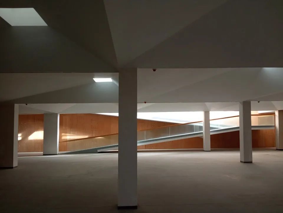 这个空间就像一个向地域敞开怀抱的大房间,消解了公共和私人之间的界限,最终成为了一个被建筑群环绕的集体聚会场所。其周围设有展览空间和三个大房间,大屋顶覆盖着包括室内广场的所有空间。