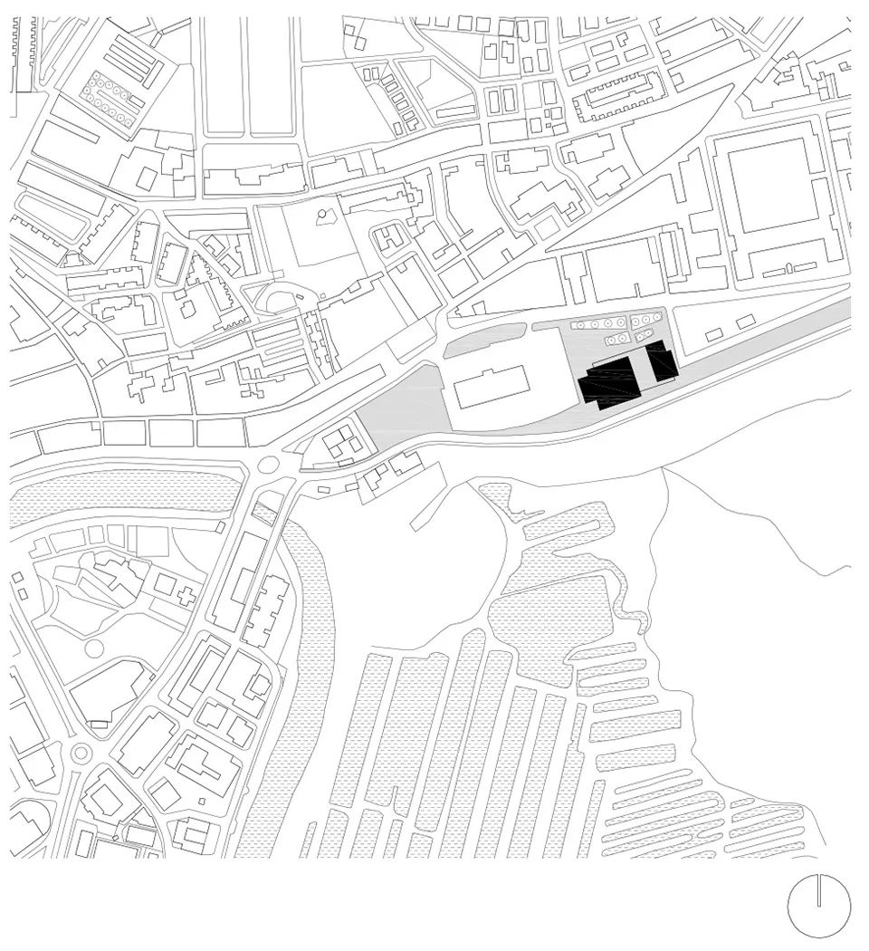 阿亚蒙特是一个被两大水源环绕的边境城市。它的西侧是城市的重要地域依据,也是与葡萄牙的天然边界的瓜迪亚纳河口;东南侧遍布广袤无垠、时刻变化的沼泽地和盐滩,这些景观直到近期拆除1990年代的铁路带才逐渐被忽视。阿亚蒙特会展中心就坐落于这片被城市重新发掘的土地上。