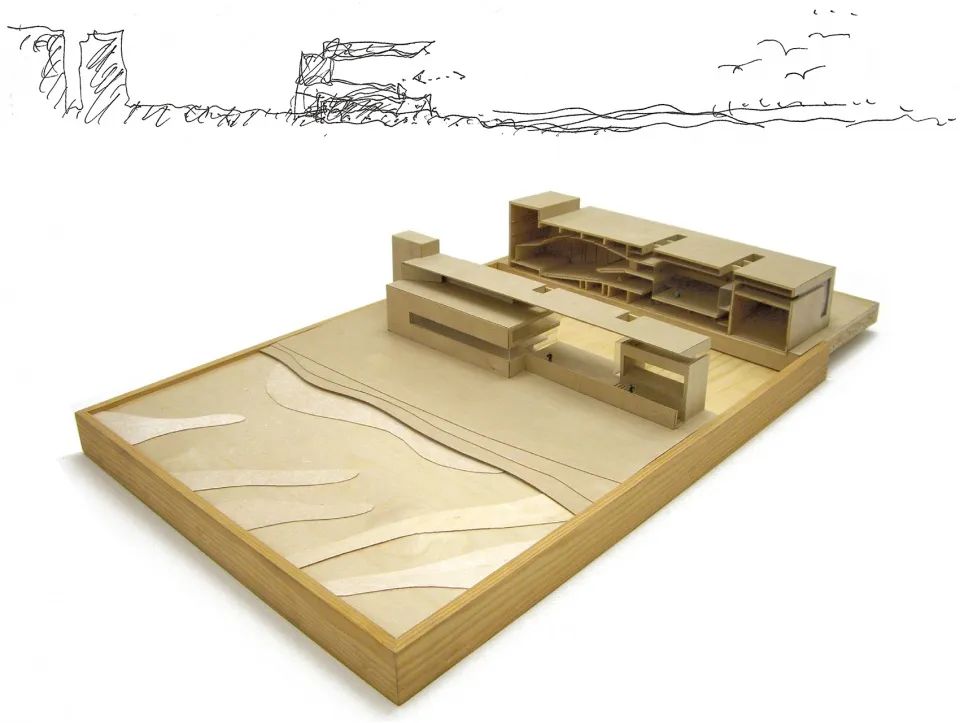 该项目旨在发掘沼泽地的景观价值,以及通过建筑室内的大型公共空间,对该项目进行整体和局部的双重解读。一个架高的带篷平台为阿亚蒙特河道的广场和长廊结构增添了色彩,透过瓜迪亚纳河到沼泽地,穿过建筑,打造了一个可以欣赏到盐滩景观的开口。