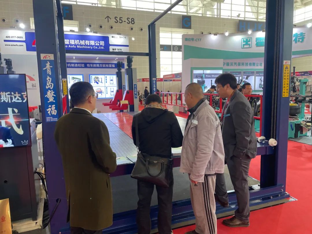本次展会上,我们备受瞩目,展位前人潮涌动。众多客户纷纷驻足咨询,深入了解我们的产品,并就代理鳌福产品展开深入洽谈。充分展现了对我们公司的信任与支持,在此,我们衷心感谢广大客户和经销商的一路相伴与信赖,期待未来共创辉煌! 青岛鳌福机械有限公司凭借自身强大的实力,专注于提升产品的技术含量,不断学习并持续改进产品,从而凸显其独特优势,确保在激烈的市场竞争中立于不败之地。在展会期间,鳌福充分展示了其卓越的技术实力,赢得了众多客户的赞誉和信赖。 本次展会成功展现了我公司在汽保行业的雄厚实力,以及鳌福团队不断壮大的态势。作为拥有46年历史的老牌企业,鳌福始终立足自身,坚定打造一流举升机品牌的决心,致力于向百年企业迈进,并向世界展示中国制造的实力。我们将继续不断创新,为行业发展贡献更多力量。由于场地限制,本次展会我们主要展出了楼层举升机、抱胎举升机我们还拥有其他类型的大吨位举升机、横梁举升机、地沟举升机、货梯和四柱举升机。