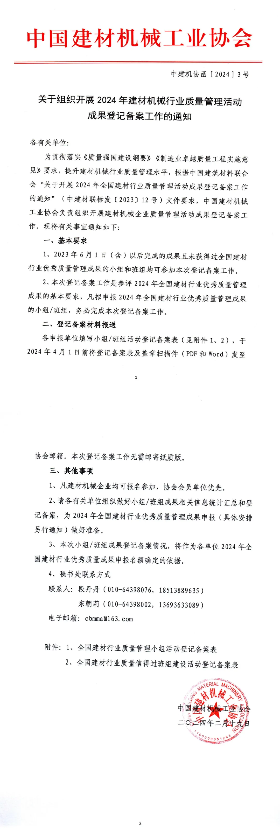 ?【即将截止】2024年建材机械行业质量管理活动成果登记备案工作启动