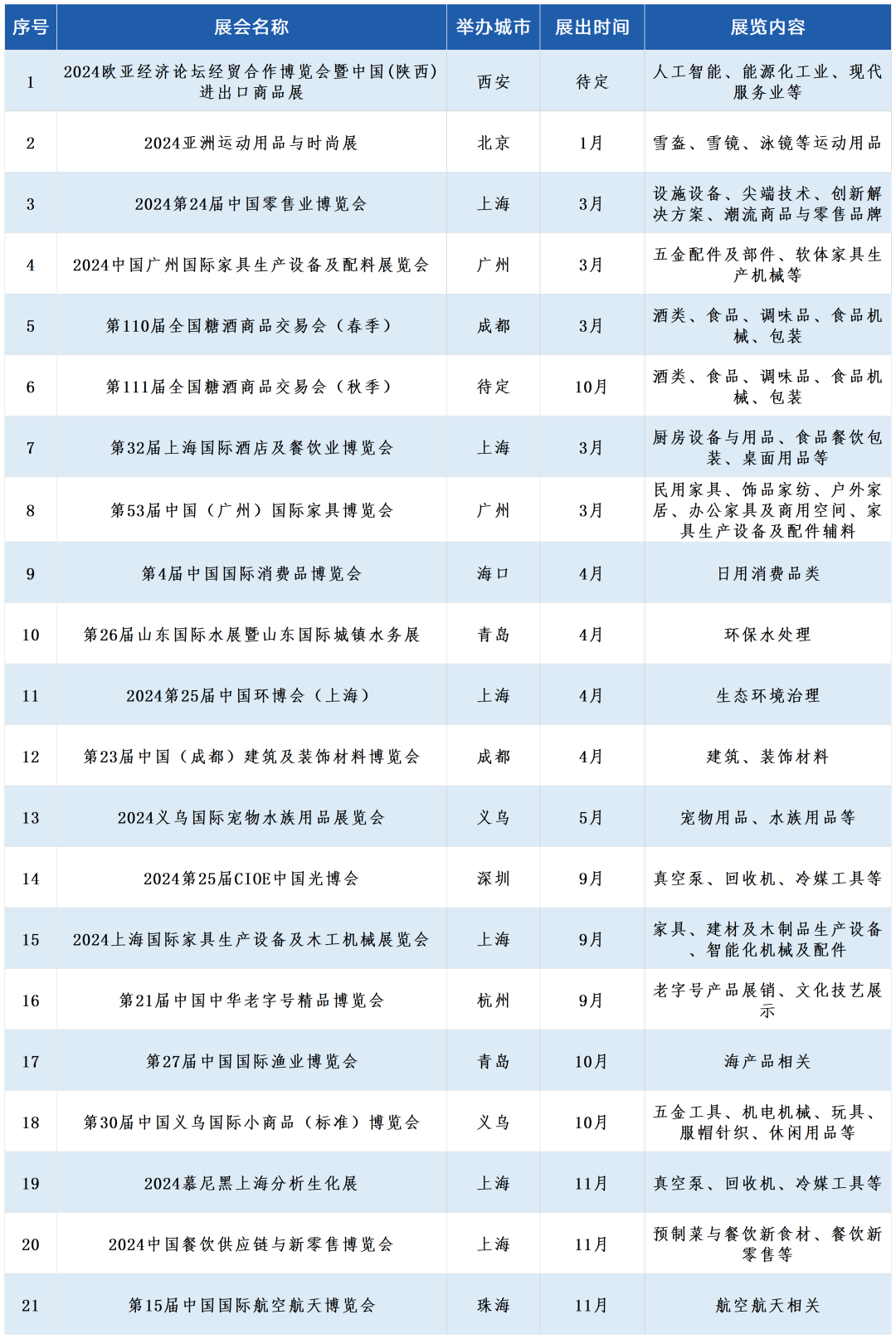 近日,市商务局研究确定了温岭市2024年度国内支持类展会目录,现予以公布,并就有关事项通知如下: