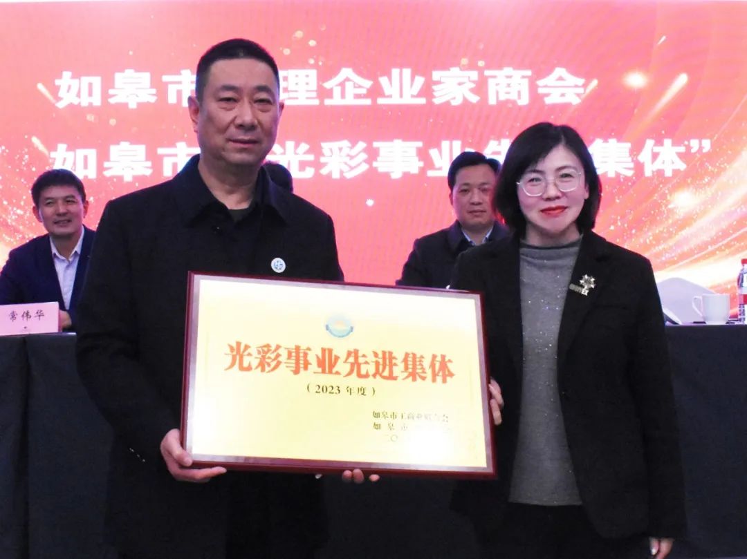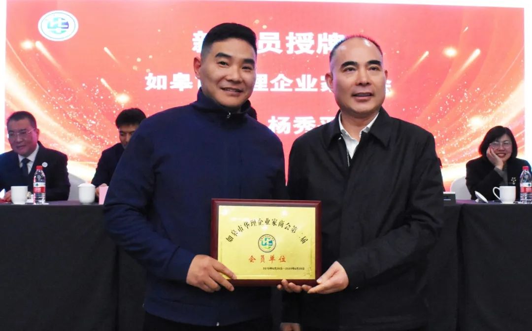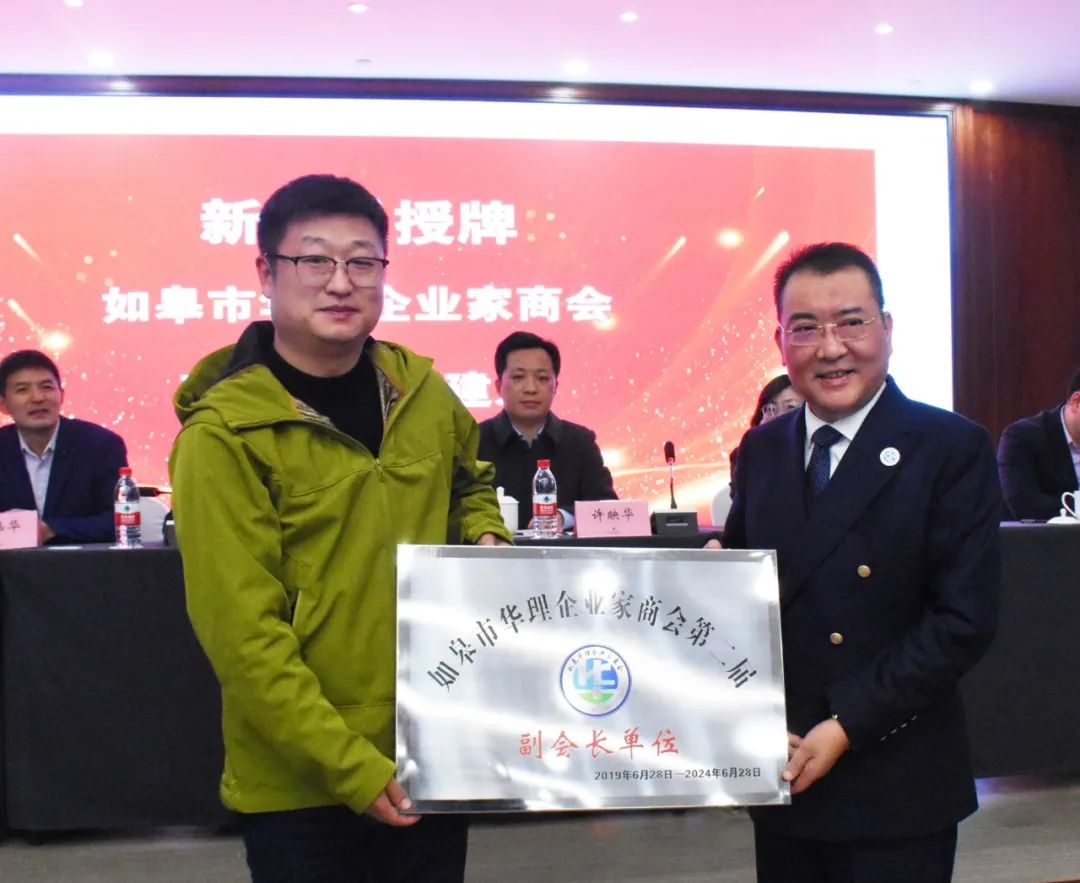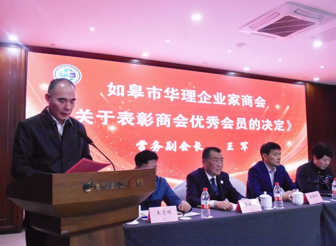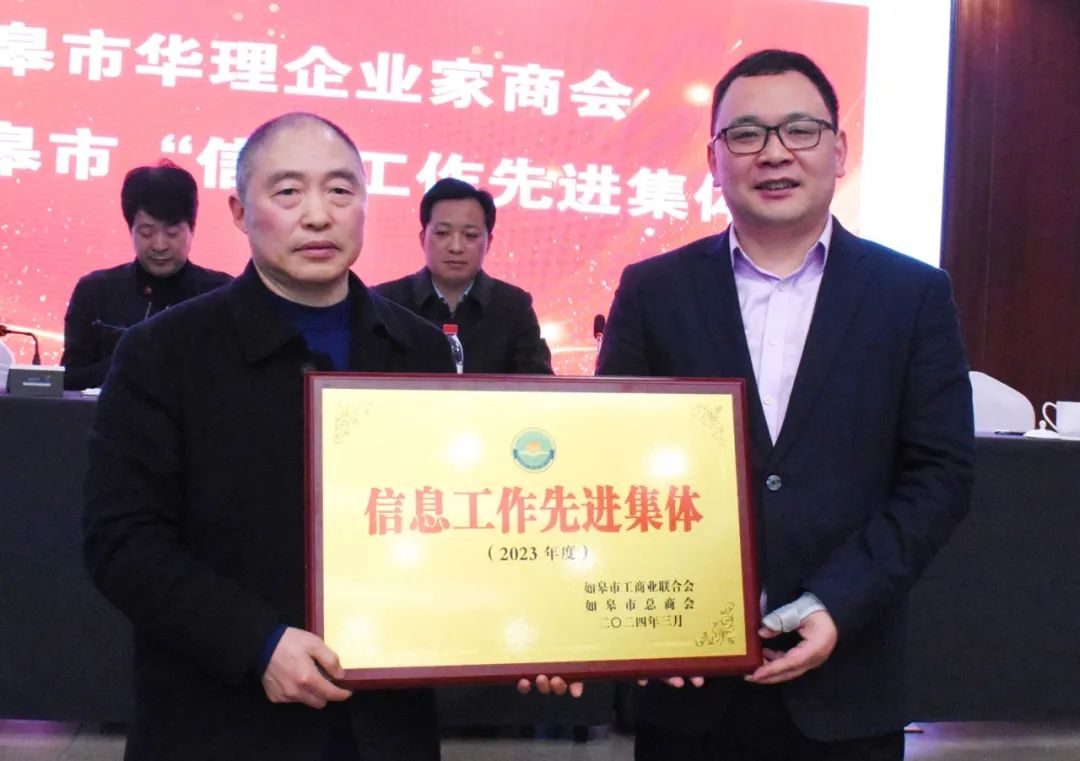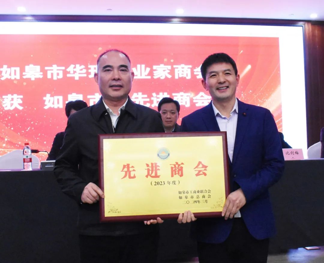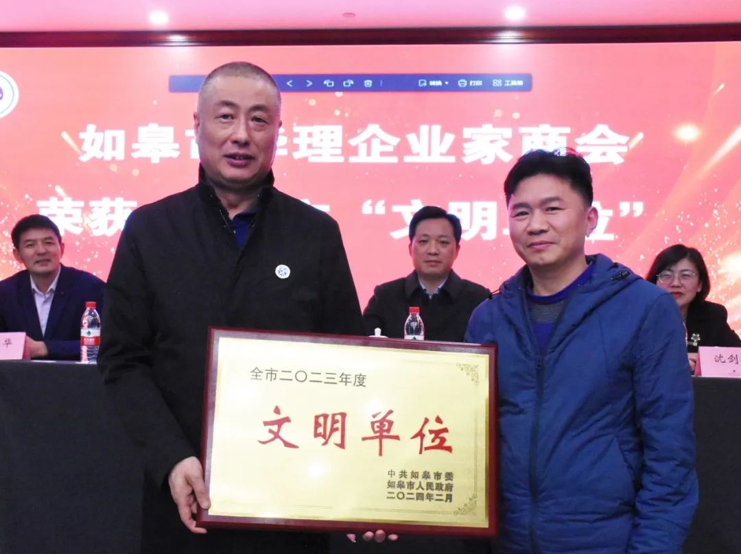 王志刚为商会颁发“如皋市文明单位”奖牌