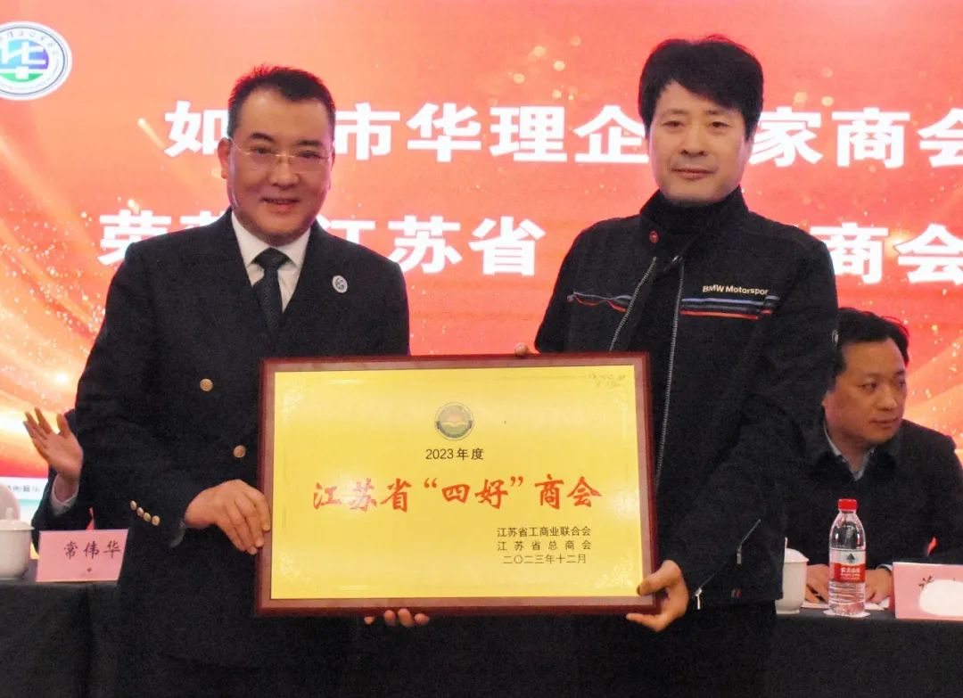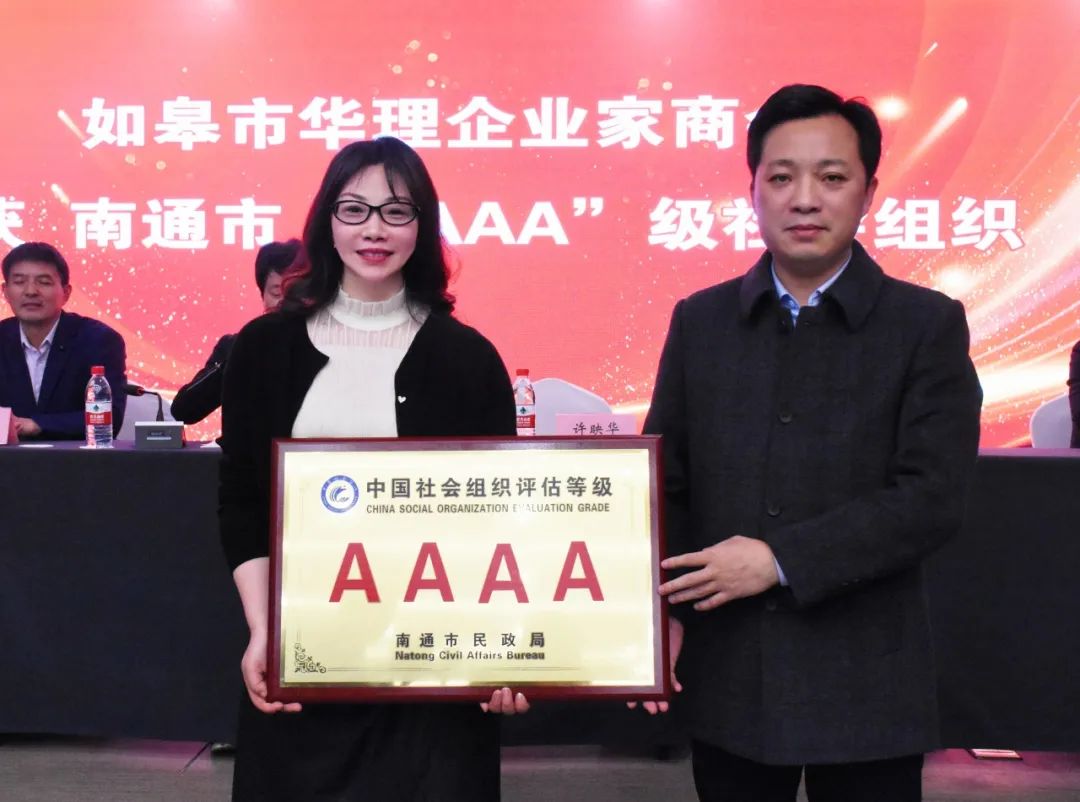 许映华为商会颁发“南通市4A级社会组织”奖牌