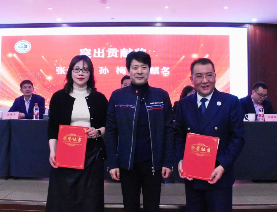 沈海松为商会颁发“信息工作先进集体”奖牌