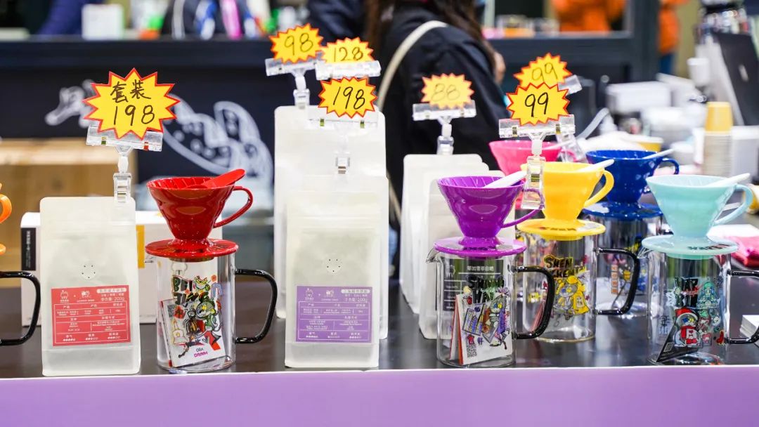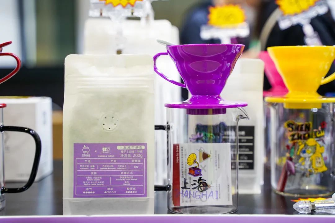 产品展示区中,我们陈列展示了特地为本次展会精心挑选、烘焙的各式风味的新鲜咖啡,还有独特的挂耳咖啡以及手冲器具和文创周边,让大家一目了然。