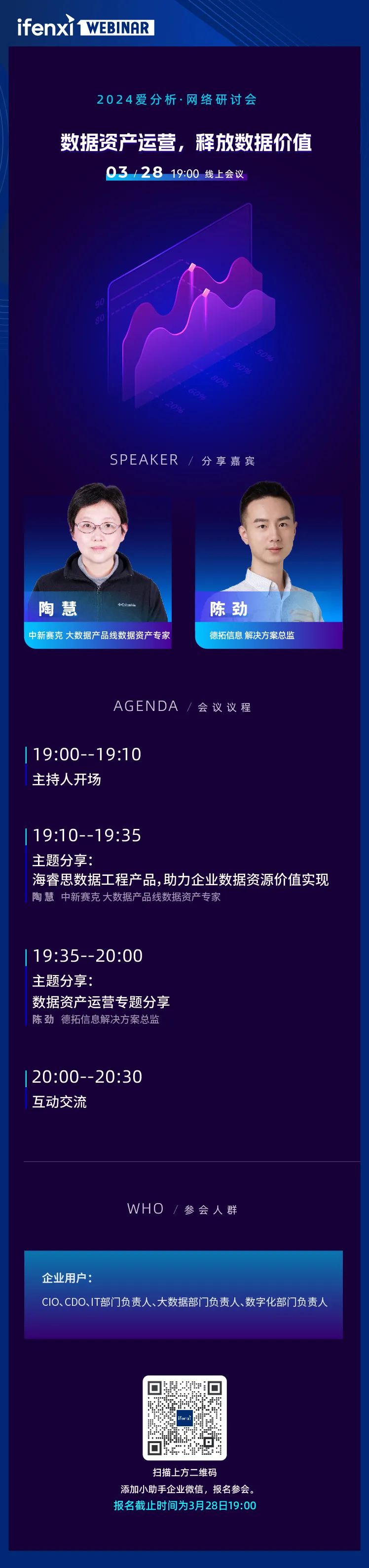 主题网络研讨会,邀请两位行业资深实践专家,围绕数据要素流通和数据资产入表两大热点话题,通过能源制造、建筑、交通等行业实践案例解读,共同探讨企业如何做好数据资产运营,实现数据价值最大化。