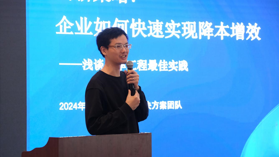 活动现场,抖音集团飞书行业解决方案高级专家王自强就《创新策略:企业如何快速实现降本增效》展开了分享,并从专业的角度,介绍了数字化建设在统筹企业数字化管理,串联产品创研、生产、品牌全生命周期的协同能力,以数字技术持续加速业务流程和经营管理的质效提升,助力企业数字化发展。