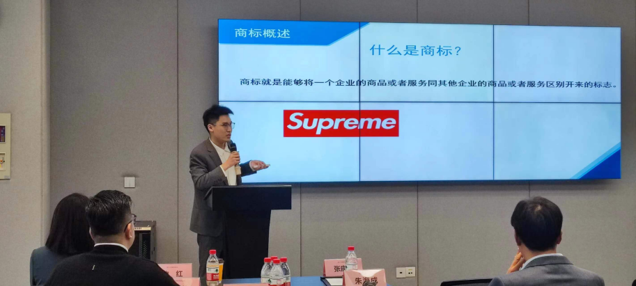 张康鑫律师带来了“品牌的国内外布局——从商标和专利视角出发”的专题分享,从Supreme商标纠纷案件出发,列举了三星等企业在宣传中出现的山寨商标问题,介绍了商标的概念、商标注册的流程和注意事项,以及商标保护的重要性,建议企业重点主推的产品需要多组合保护,包括商标、版权、外观设计专利等。