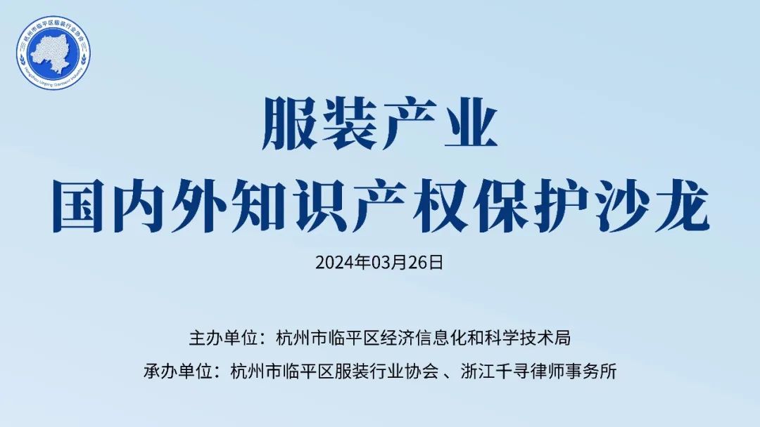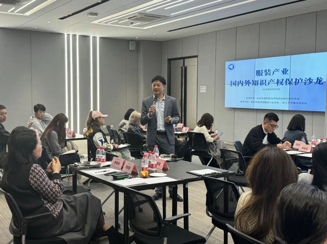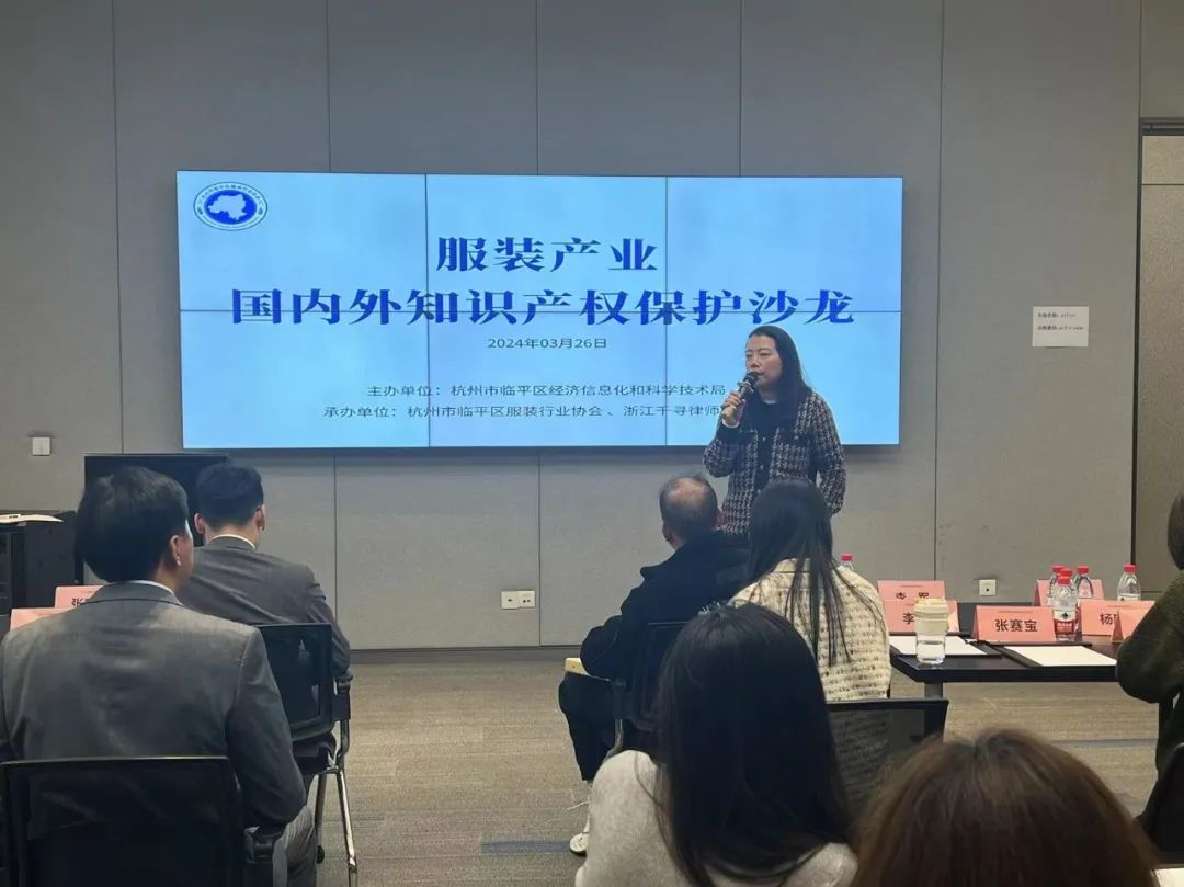 3月26日临平区服装行业协会携手浙江千寻律师事务所给区内服装企业带来了一场《服装产业国内外知识产权保护》沙龙,协会会员企业浙江伊芙丽实业有限公司、上海菀草壹服饰有限公司、杭州嗨喜电子商务有限公司、杭州新想象供应链管理有限公司、杰客(杭州)品牌管理有限公司、杭州界旗服饰有限公司、杭州伯俊软件科技有限公司、杭州川上加一文化创意有限公司、杭州申米服饰有限公司、杭州伊美源实业有限公司,杭州作衣服饰有限公司等联合区内二十余几家企业参加了本次沙龙。