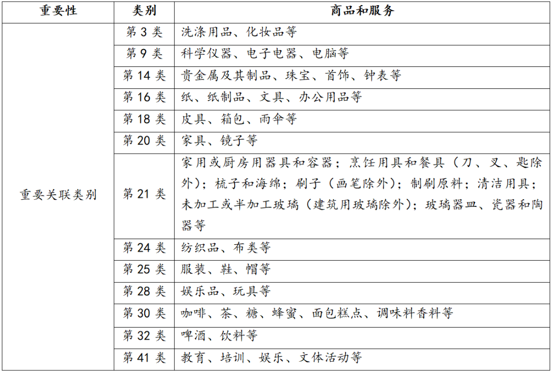 选择正确的商标分类,确保商标在合适的分类下进行注册保护。但企业注册商标时不一定要局限在这些类别之中,可根据自身发展战略进行多类别注册,使商标在多个领域得到防御保护,避免在未涵盖的分类中被他人抢先注册。尤其是针对企业最核心的商标,可以全类别注册,避免竞争对手在其他类别抢注,制约企业未来业务拓展。(表1、2)