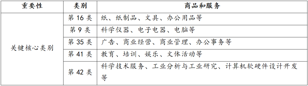 表1 文具行业注册商标类别